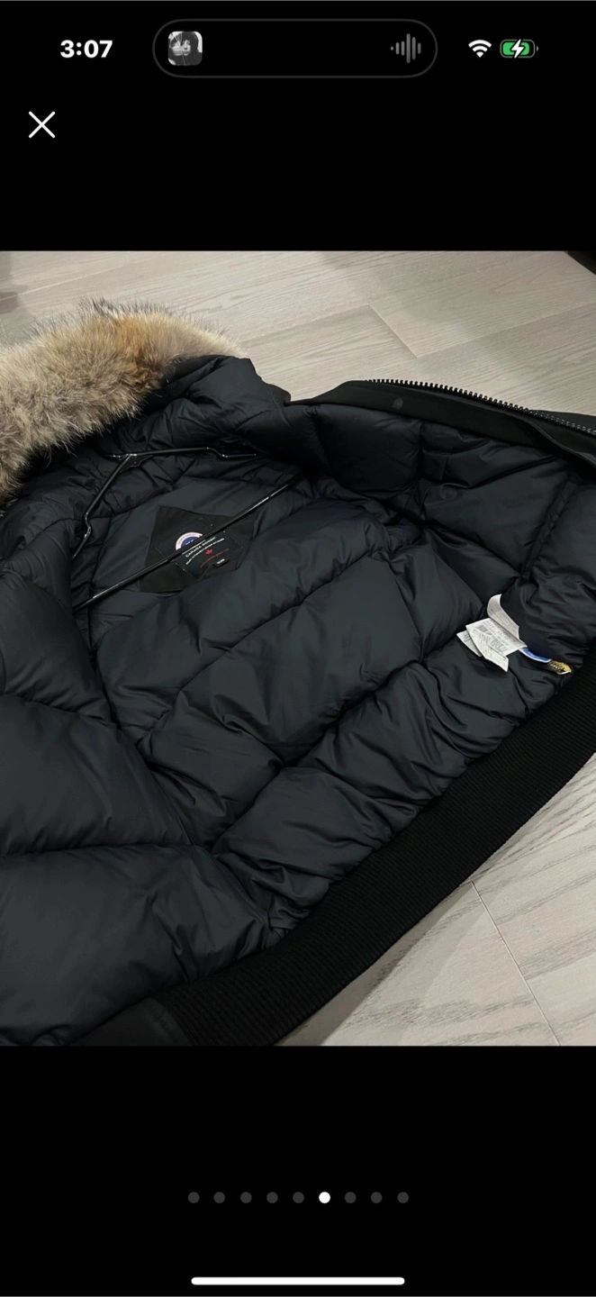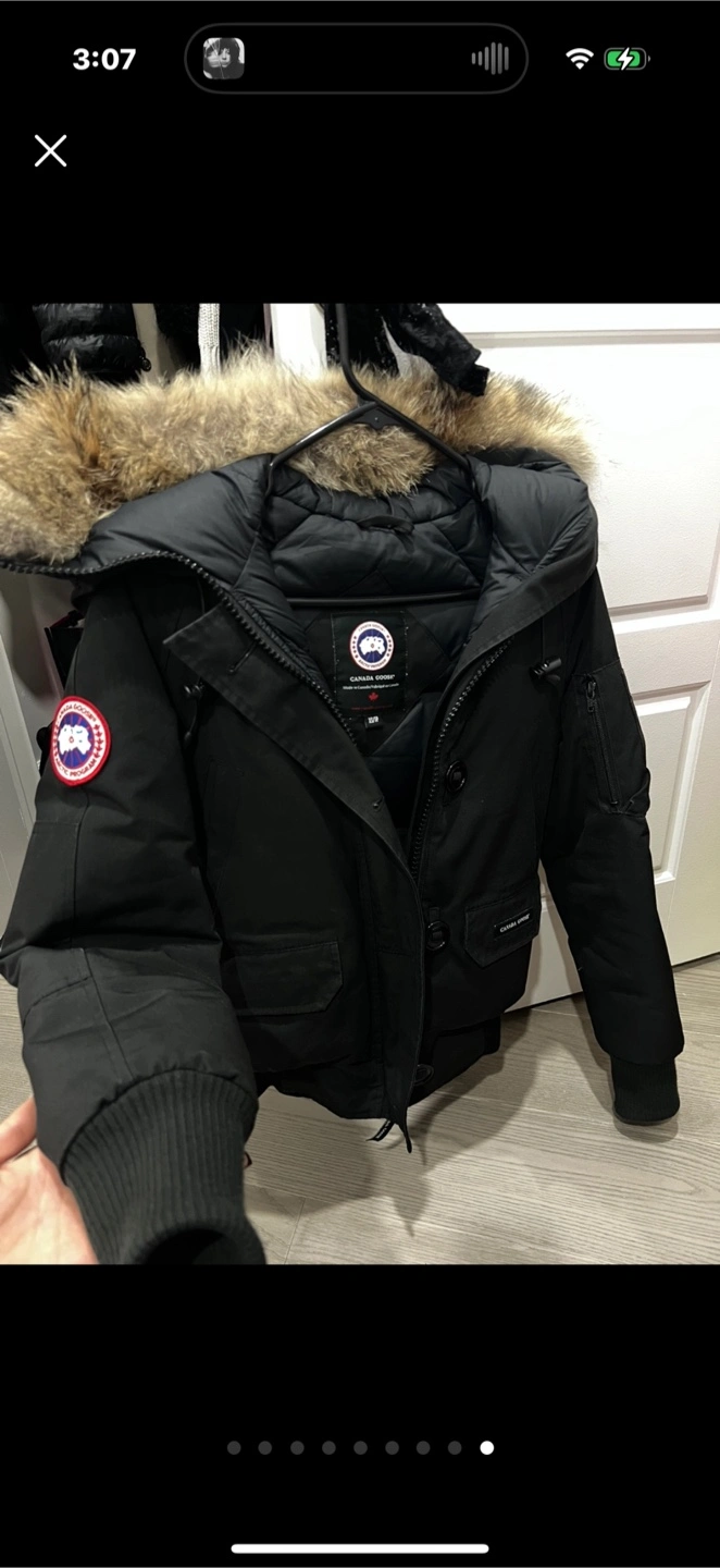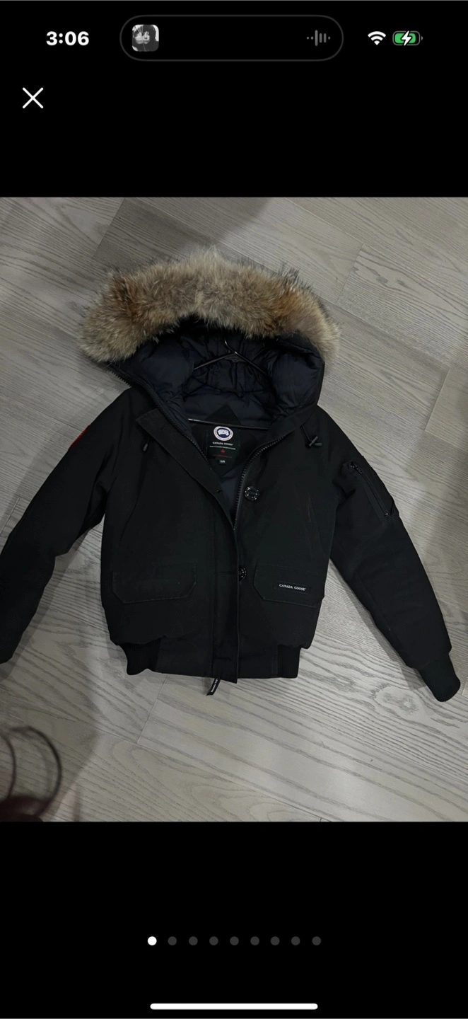 Selling a Canada Goose bomber jacket in black, size XS. It's in great condition and ready for a new owner! Perfect for staying warm during those chilly Canadian days.