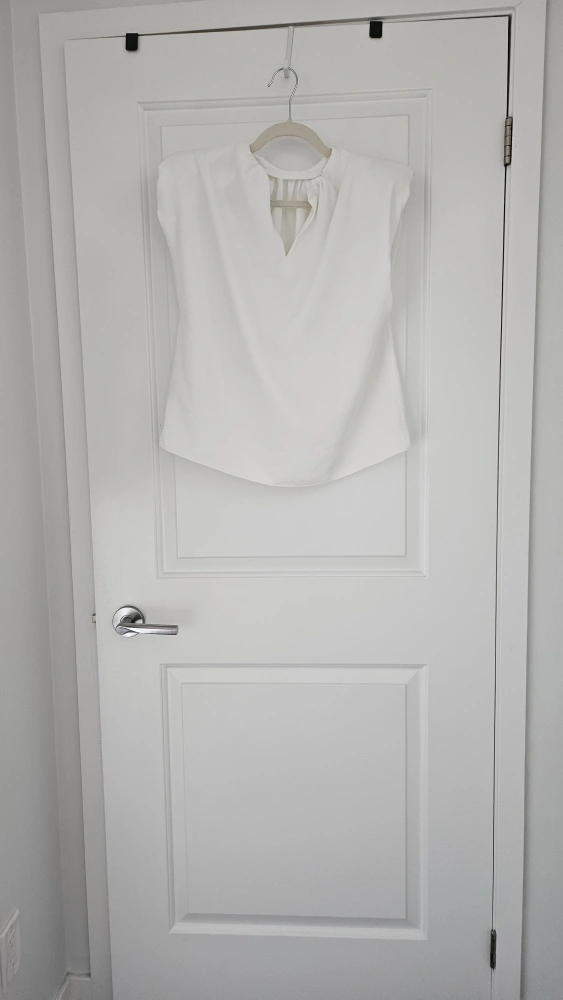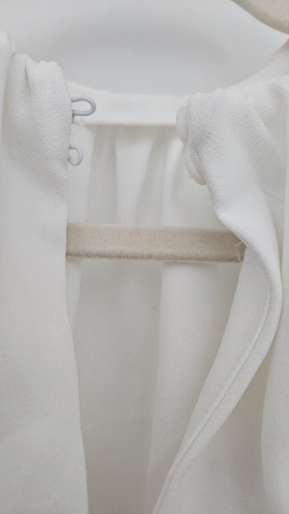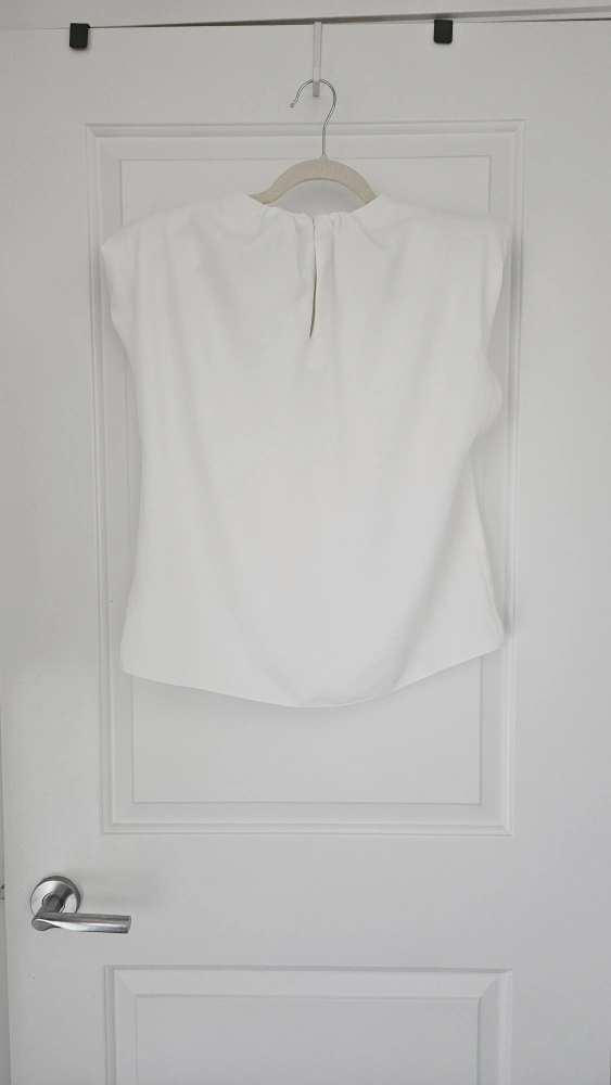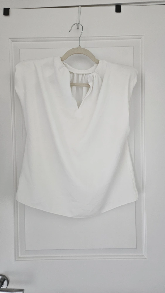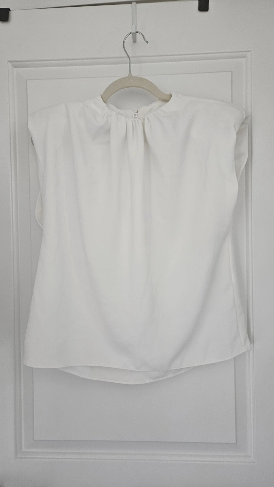 Unique Zara white blouse in size M. It's in great condition and perfect for a dressy, casual or vintage look! Shoulder pad and unique sleeve opening makes this a statement blouse, with a runway style look