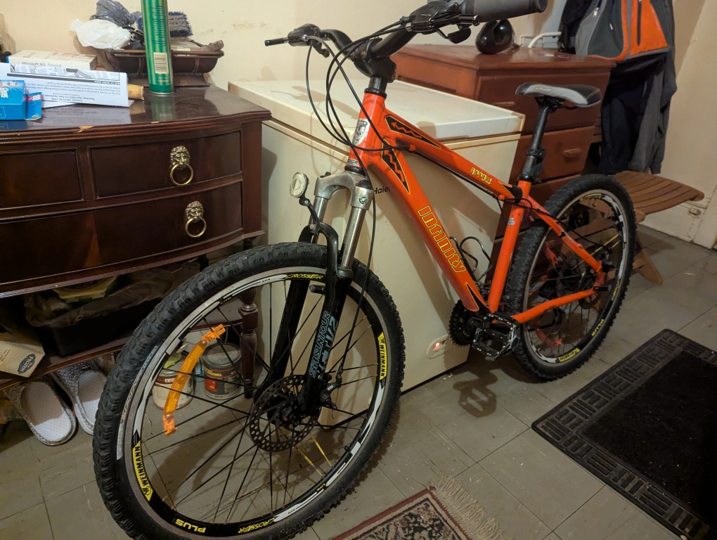 Infinity arrow disc brakes and front suspension, the bike is in great condition and well maintained.