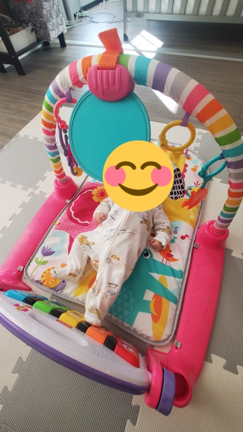 Free baby playmat with kicking piano and hanging mirror & toys. Great for newborn and infant's motor development.