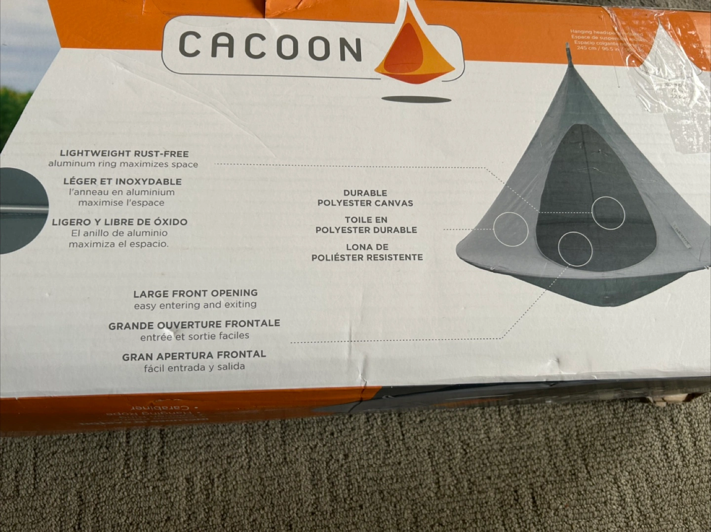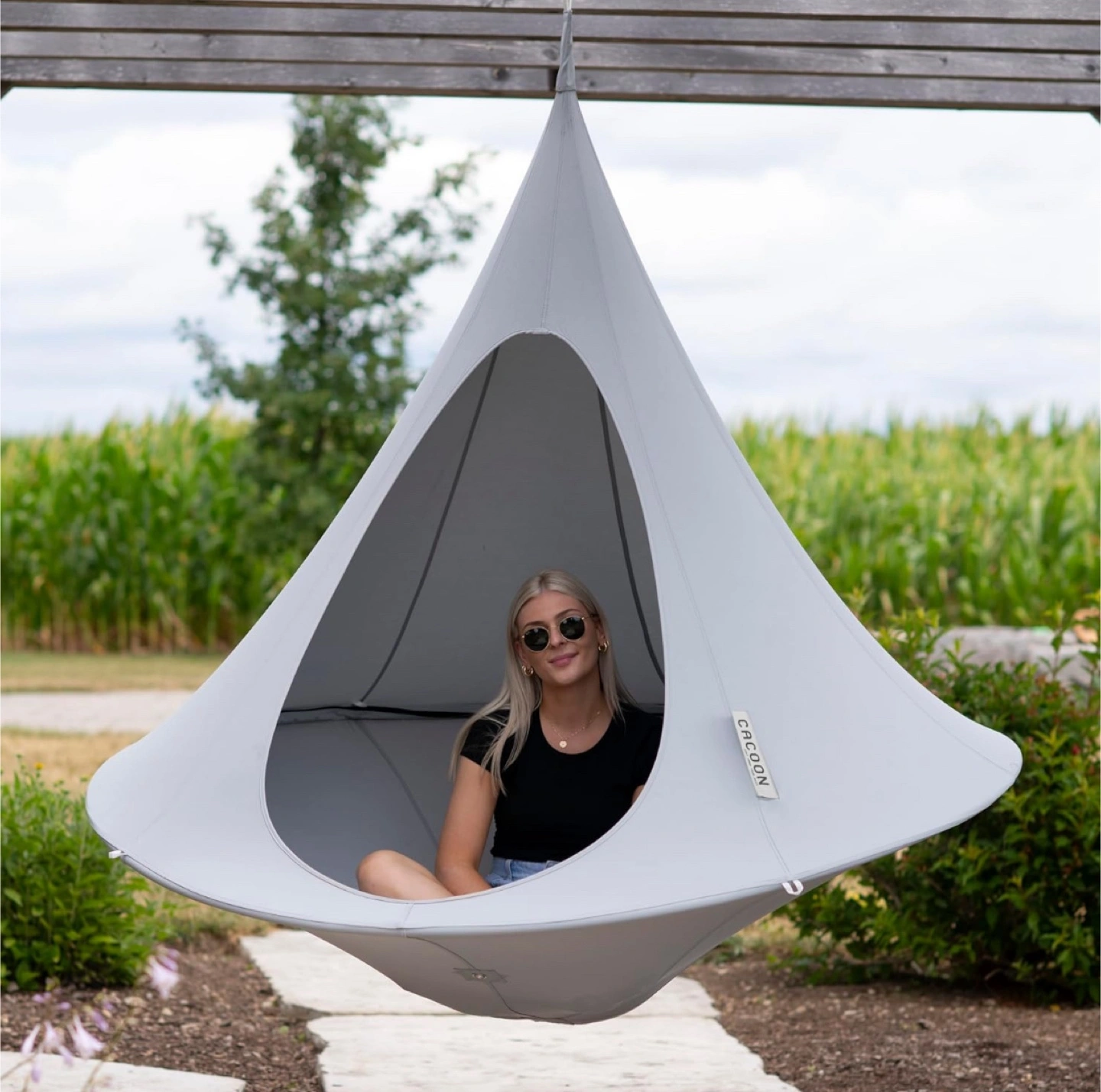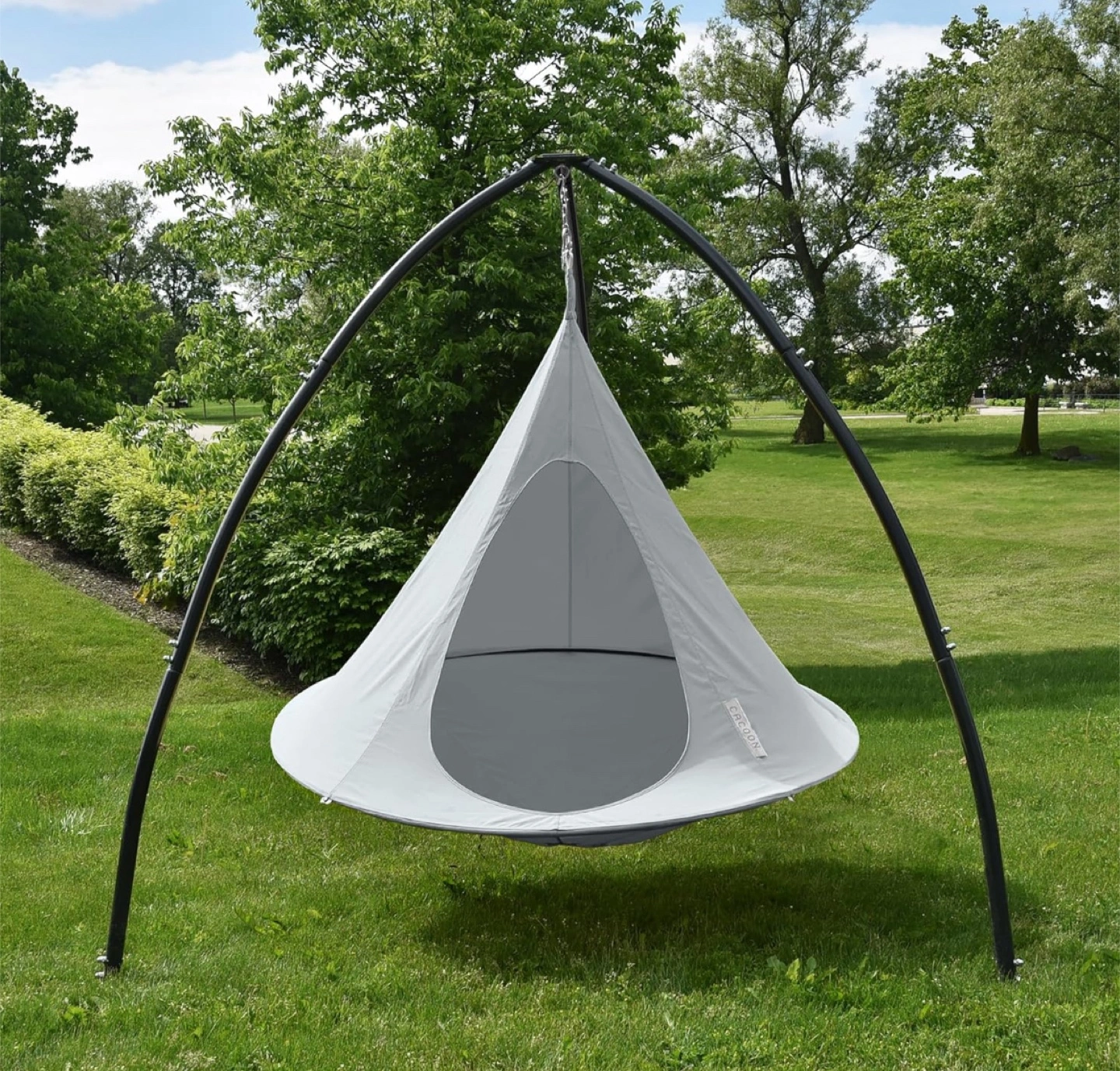Strong & Stable: The lightweight, rust-free aluminum ring ensures the Cacoon stays fully stretched, providing ample space and comfort inside, while supporting your weight without sagging.