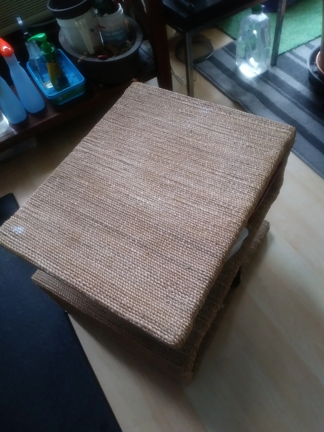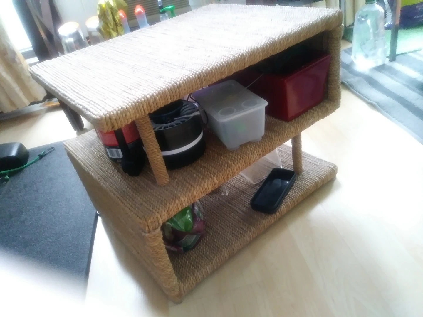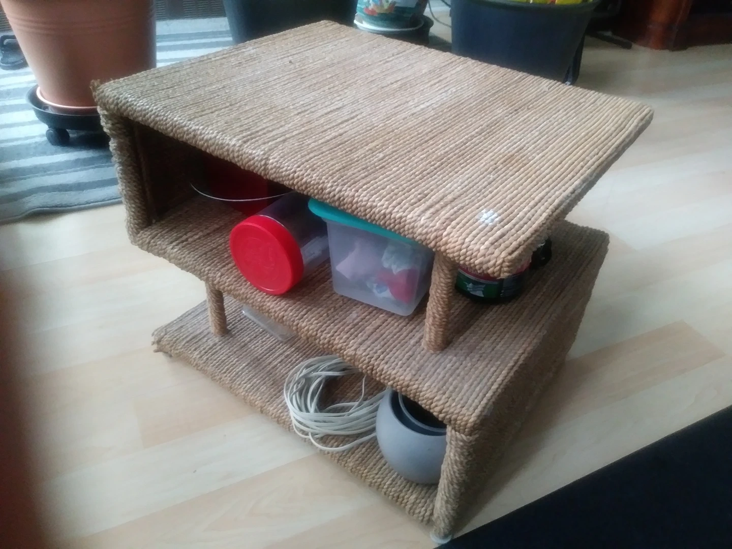 All original material intact. Shelf measured 6.5"H. Great for use as scratch pad for pets or use as occasional table, stool or padestal.