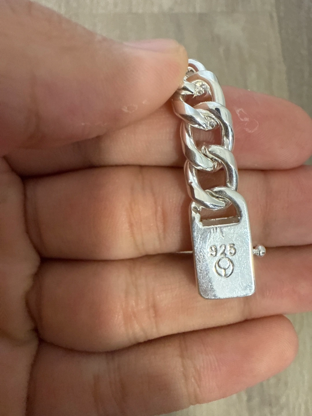 Selling a beautiful 925 sterling silver chain bracelet. It's in great condition and ready for a new owner! The bracelet features a classic curb chain design.