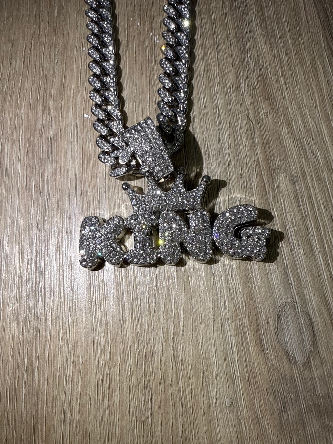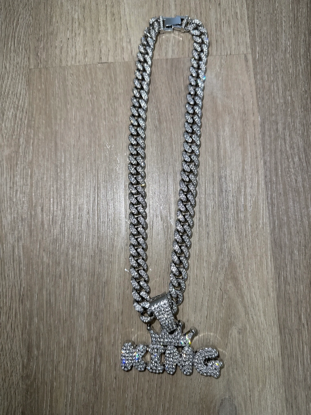 Selling a blinged-out "King" Cuban chain necklace! It's a real eye-catcher with all the rhinestones. Perfect for adding some sparkle to your look