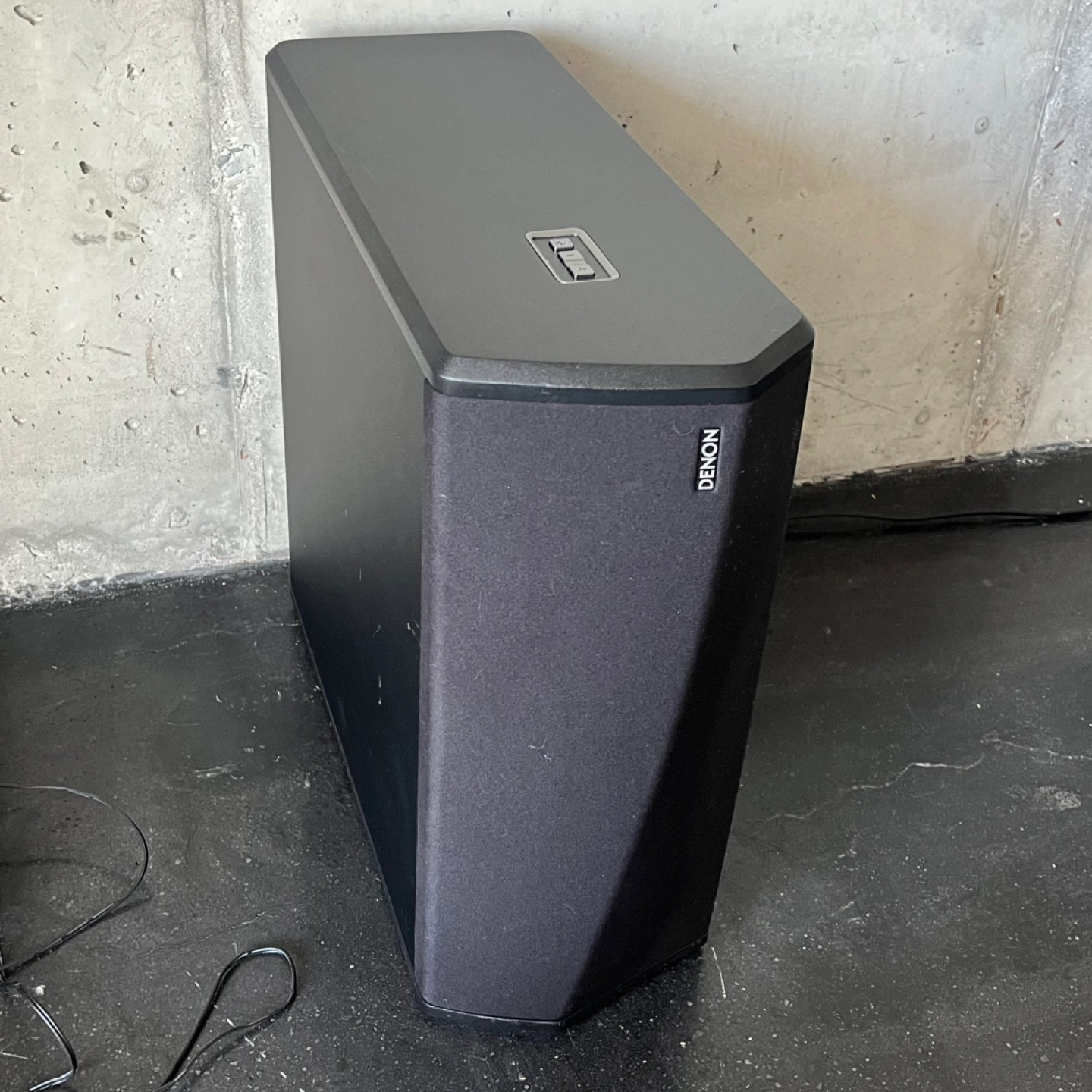 Selling a Denon DSW-1H wireless HEOS subwoofer! It's in great condition and ready to boost your home audio setup. This subwoofer is designed to deliver deep, powerful bass wirelessly. It's the perfect addition to the Denon HEOS Soundbar that we're selling separately but can make an even better deal if bought together!