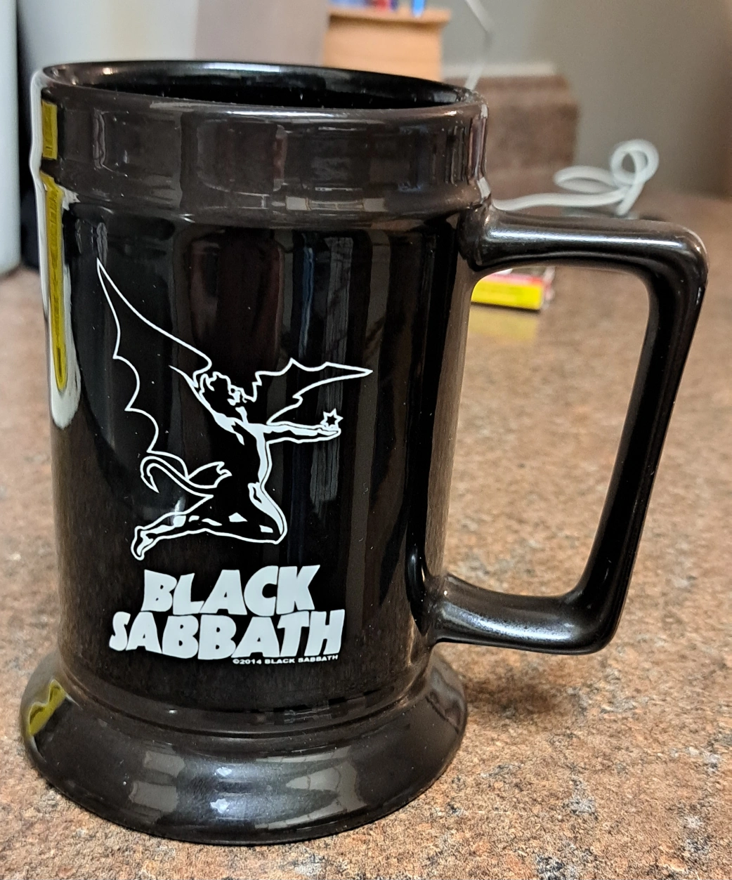 Selling a cool Black Sabbath ceramic mug from the Sabbath 13 tour. It's black with the iconic band logo on it. Great for any fan of the band!