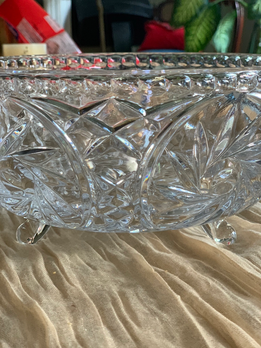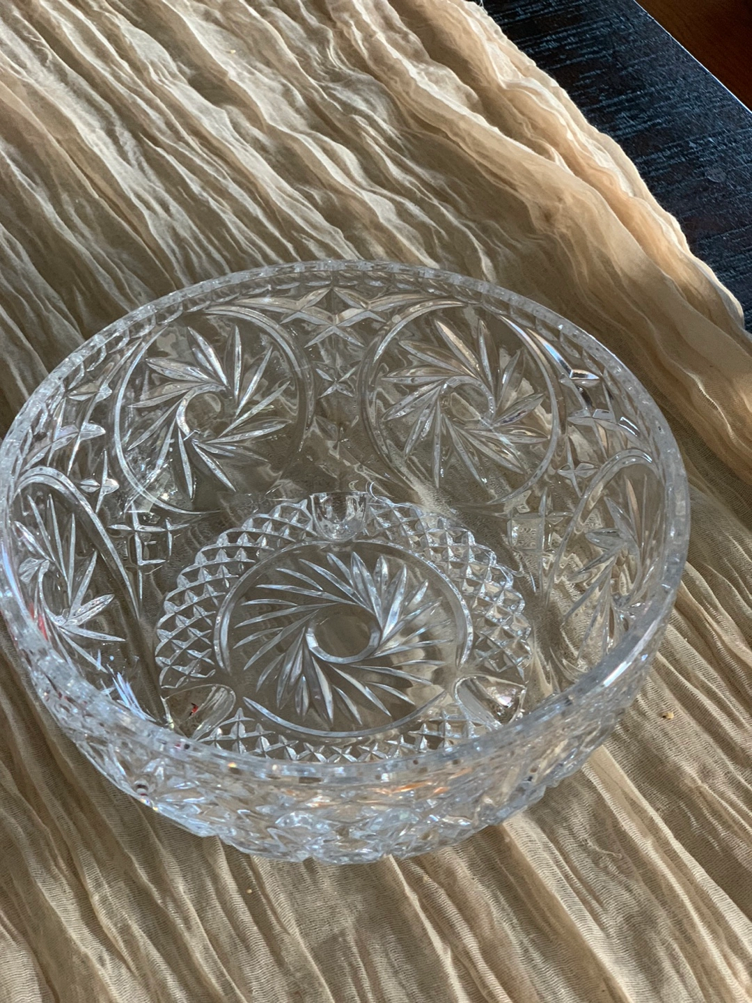 111Selling a beautiful crystal bowl with intricate designs. It's perfect for adding a touch of elegance to any room. The bowl is in great condition and ready for a new home