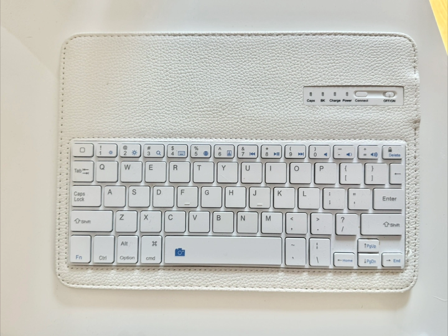 Selling a white stylish wireless keyboard. It's in great condition and perfect for on-the-go use. The keyboard features a standard layout with function keys and a convenient on/off switch. It connects easily for a seamless typing experience. I used it with my iPad and it was very convenient :)