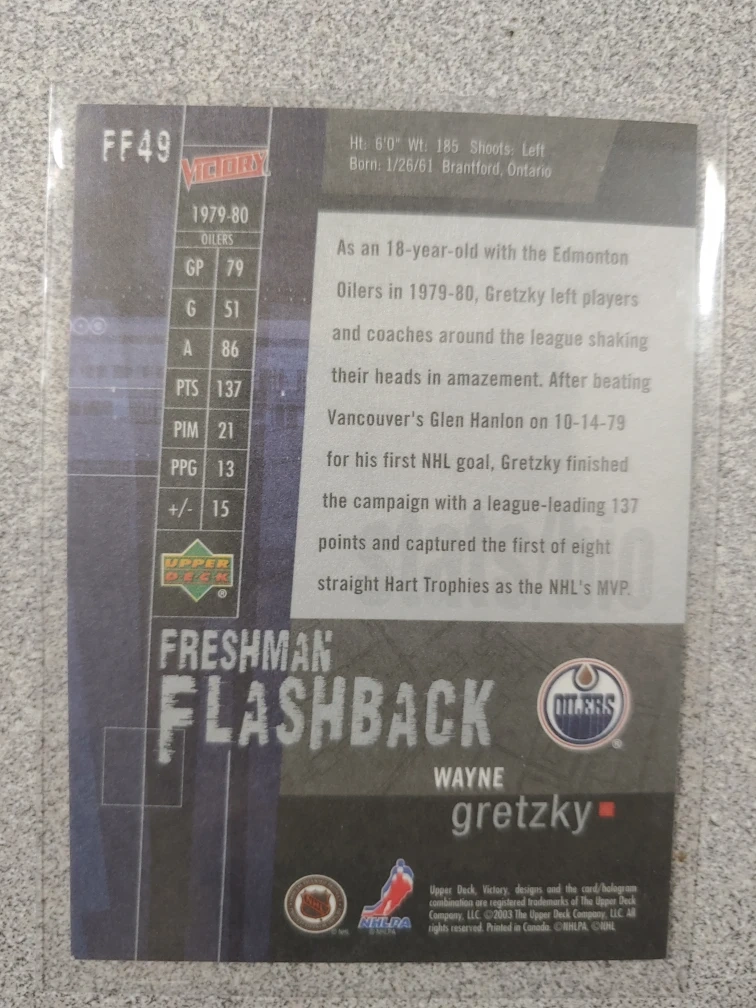 315Wayne Gretzky 2003-04 Upper Deck Victory Freshman Flashback Card #FF49