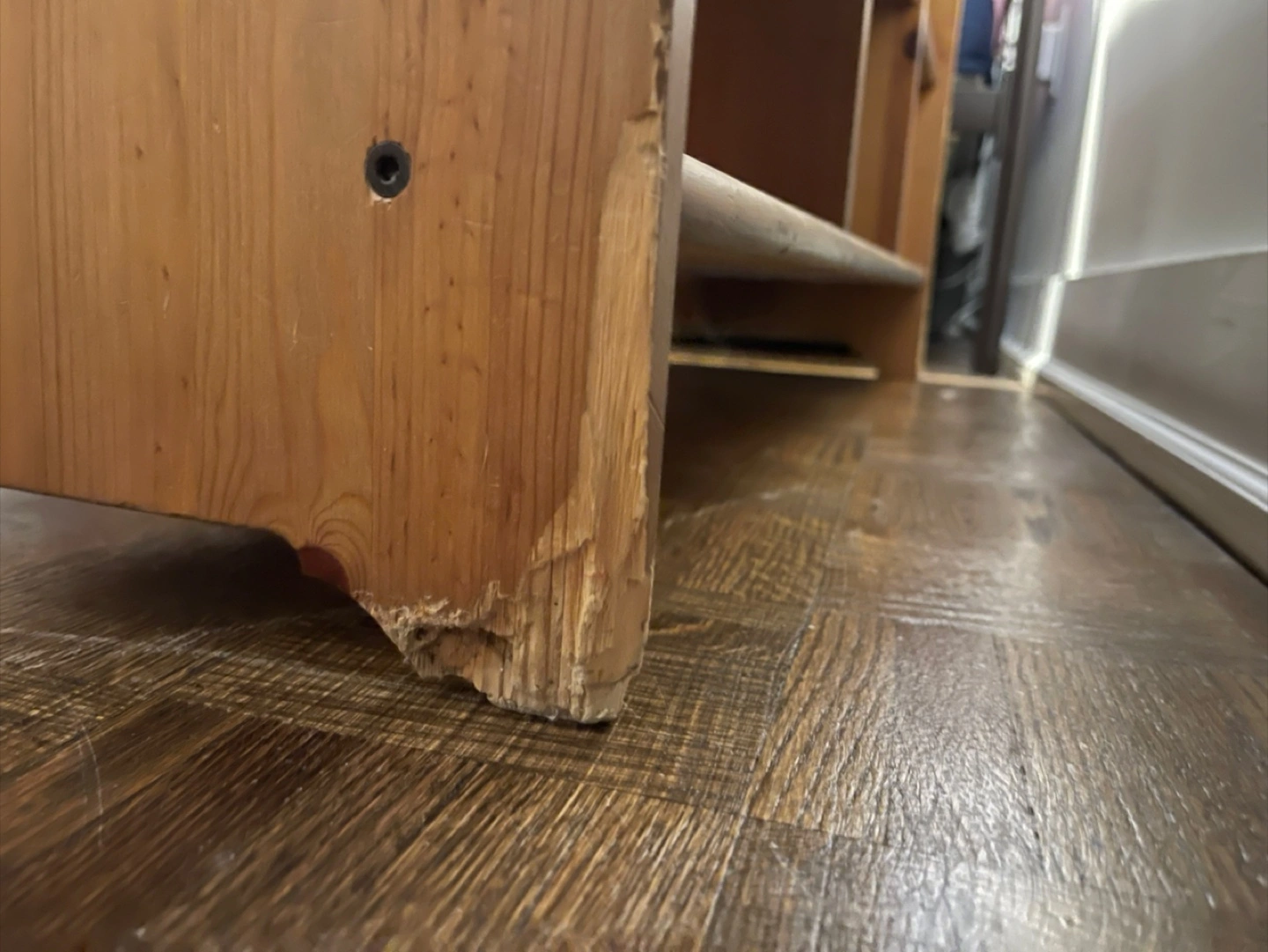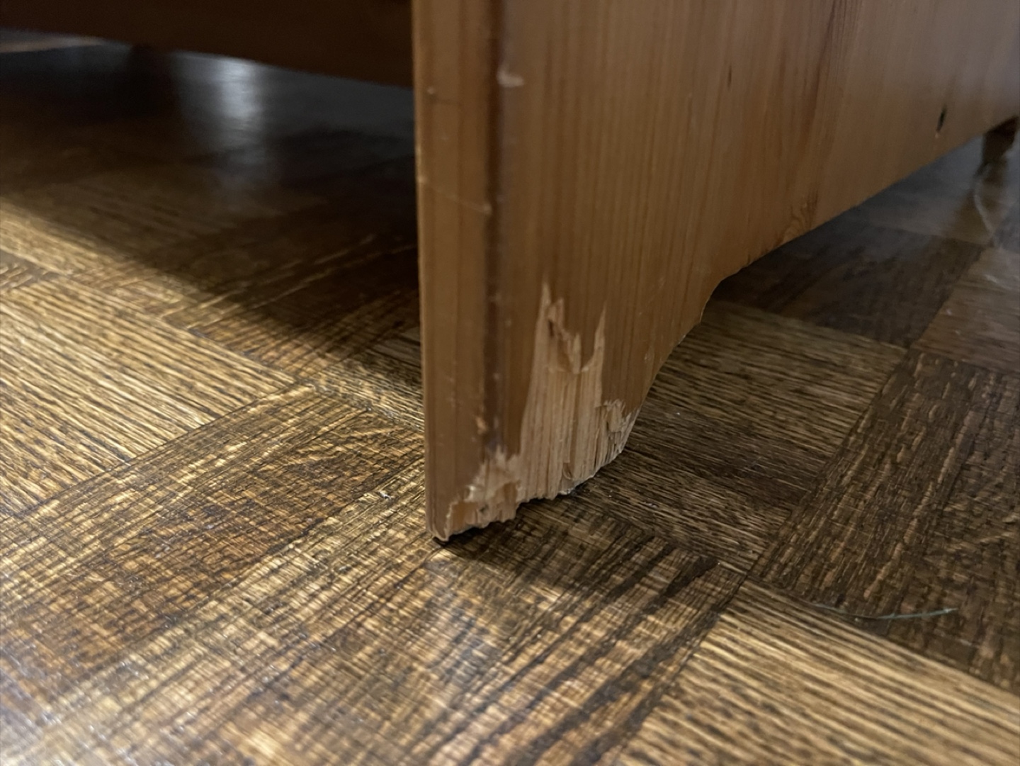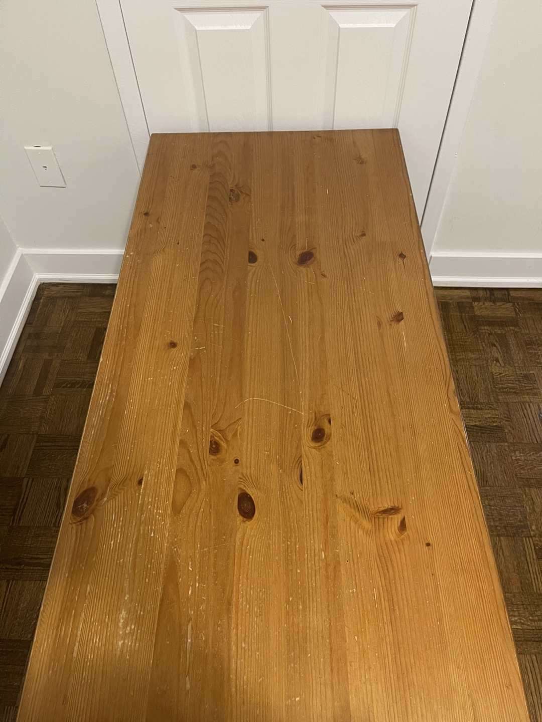 Note that the top of the table has some scratches and discoloration, and the wood is slightly chipped on two of the legs *As shown in pictures*
