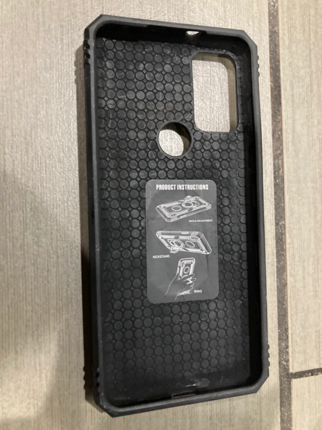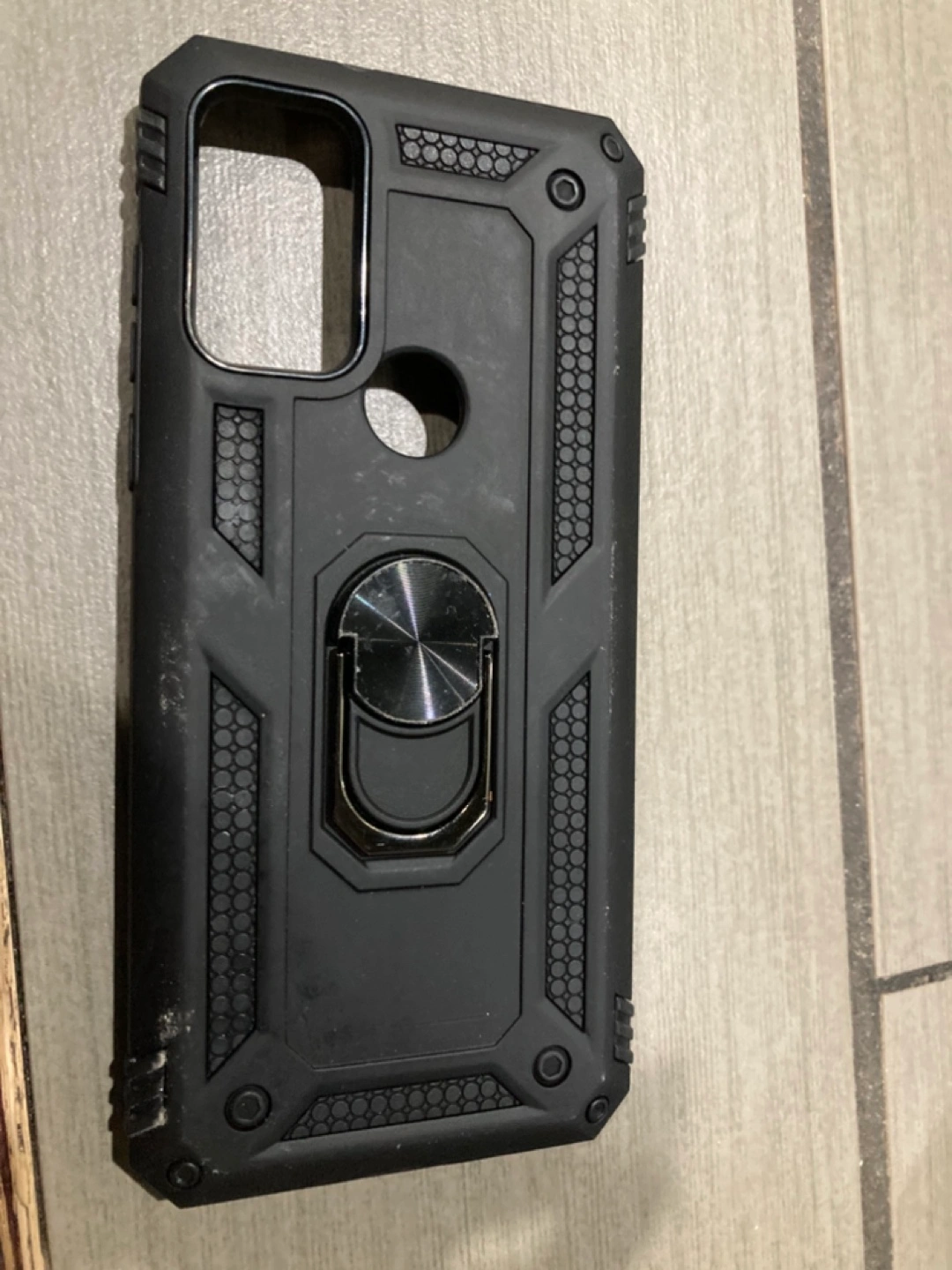 Selling a black phone case with a built-in ring stand. It has a rugged design for extra protection and a convenient ring for easy grip and hands-free viewing