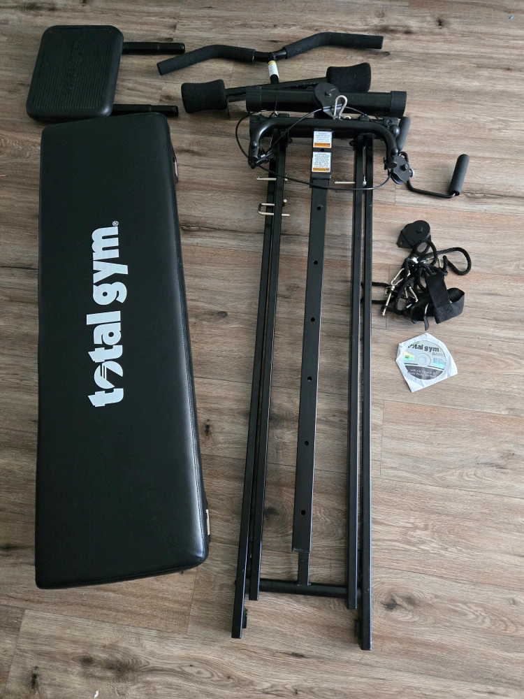 Selling a Total Gym home exercise machine! It comes with the basic DVD and all the attachments you need to get started on your fitness journey