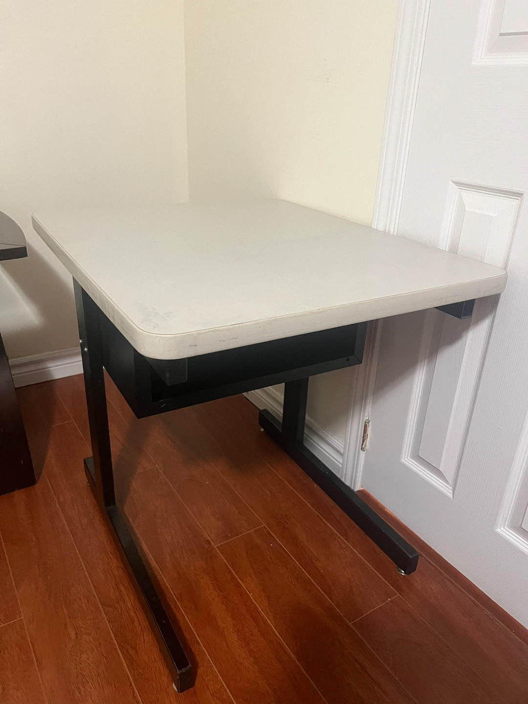 Looking to sell this small desk! It's in great condition and perfect for a small space or student. It has a black frame with a white top. It's sturdy and ready for a new home Need gone asap!