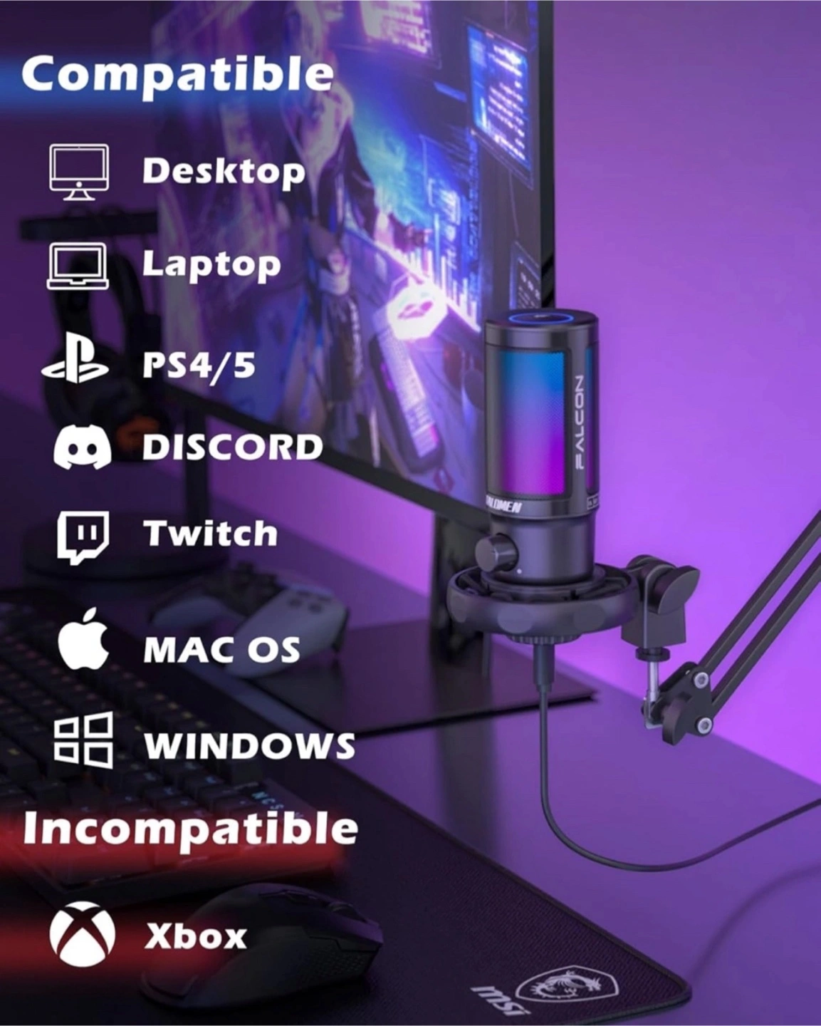 Questions about the condition or availability will not be responded to, all the details are listed below ** Brand new ** ** It’s still available!!! ** ** Cash only ** ** NO trades ** NO E-TRANSFERS —> ADDRESS - MEET HERE <— Starbucks 8010 Bathurst St, Vaughan, ON L4J 0B8 • Easy Setup: Plug-and-play USB connection for direct connection to computers or game consoles (PS4/PS5). • Setup: Plug-and-play USB connection to computers or game consoles (PS4/PS5) without additional software. • Connection Stability: Type-C port on the boom mic end keeps the USB cable locked to avoid disconnection. • Cable Length: 2m (6.5ft) detachable USB cable provides flexibility. • Design and Features: Automatic gradient RGB lighting effect, mute function, and on-body function keys for quick mute and volume adjustment. • Sound Quality: Condenser microphone with cardioid pattern for clear and focused sound pickup, enhancing gaming communication. • Product Features: Includes a shock mount, pop filter, boom arm, headphones, USB cable, C-clamp, and user manual. • Microphone Stand: Features a secure clamp for desks up to 2” thick and an RGB light. • Noise Reduction: Boom arm allows for microphone placement, pop filter blocks plosives, and shock mount reduces vibration.
