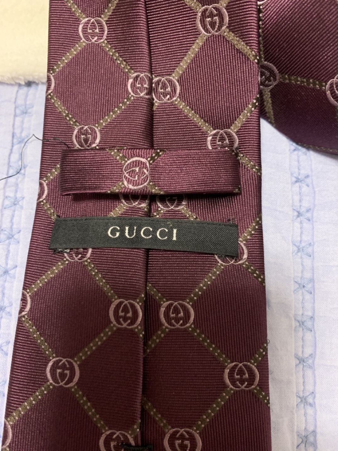 Gucci Tie - Burgundy with GG Pattern