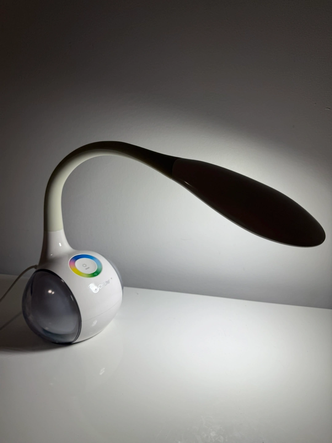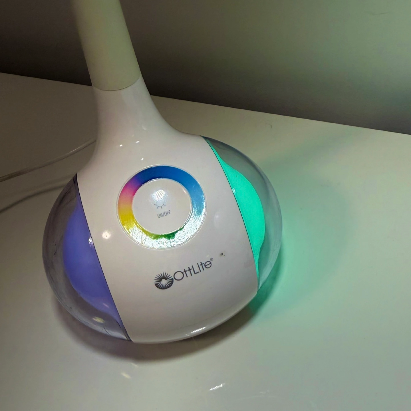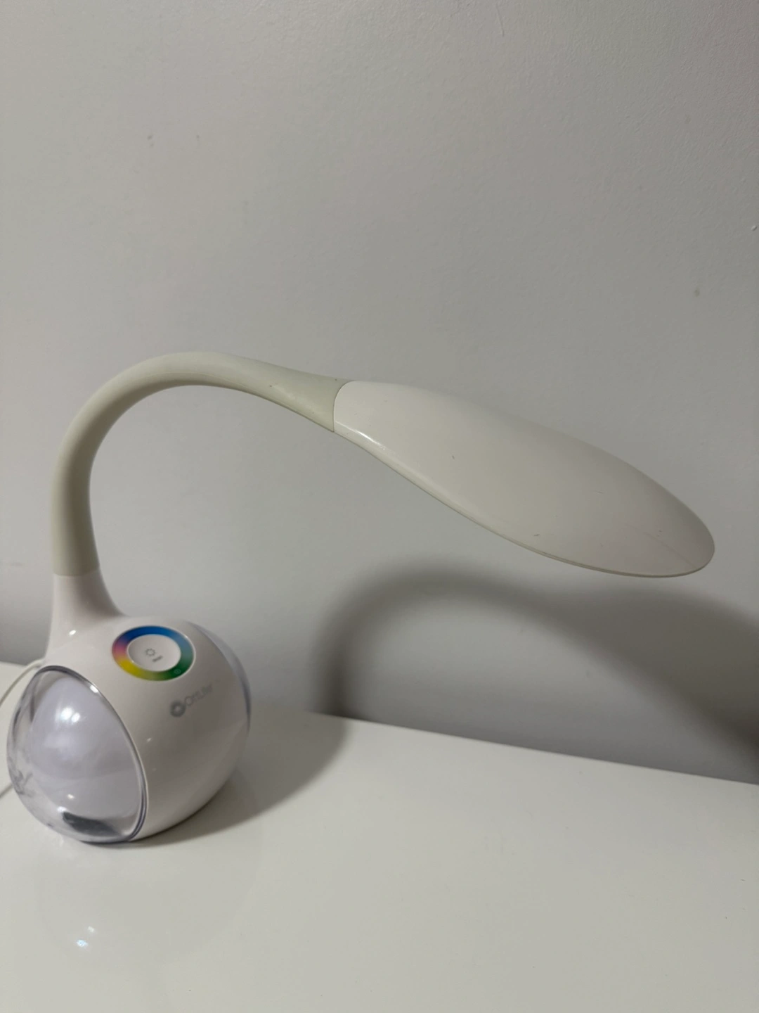 Selling an OttLite LED desk lamp with color changing base. Super bright natural daylight LEDs, Touch sensitive control panel with 3 brightness settings. Height adjusts from 10 to 20.5 inches.