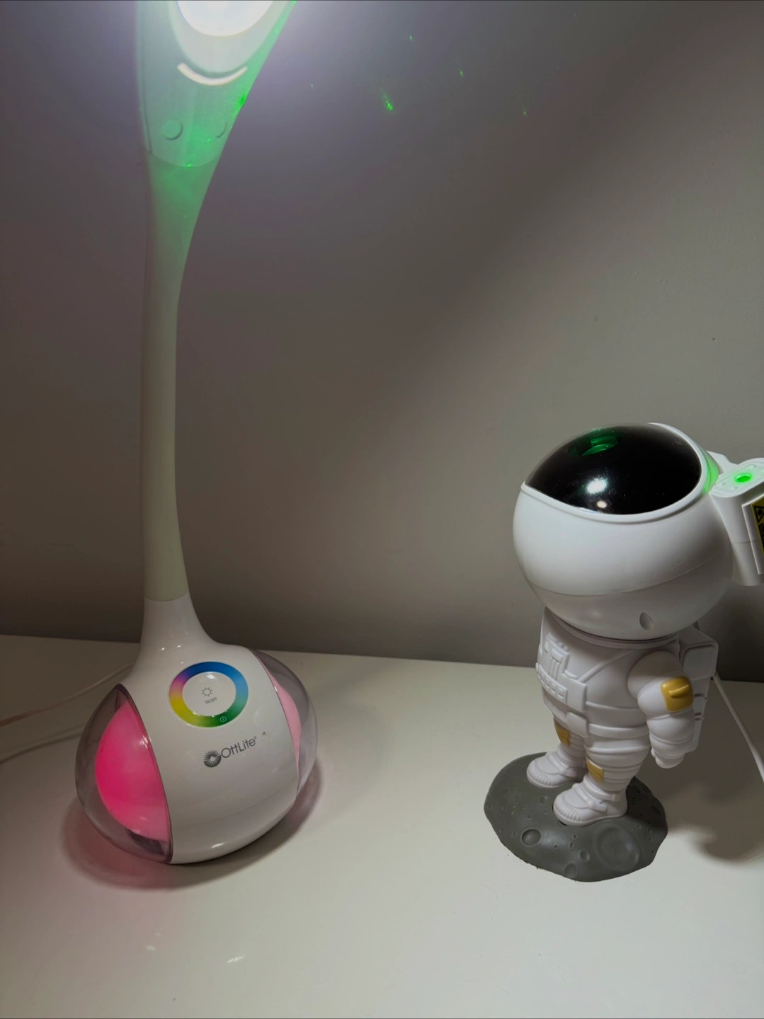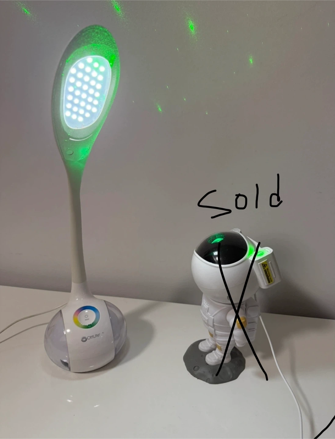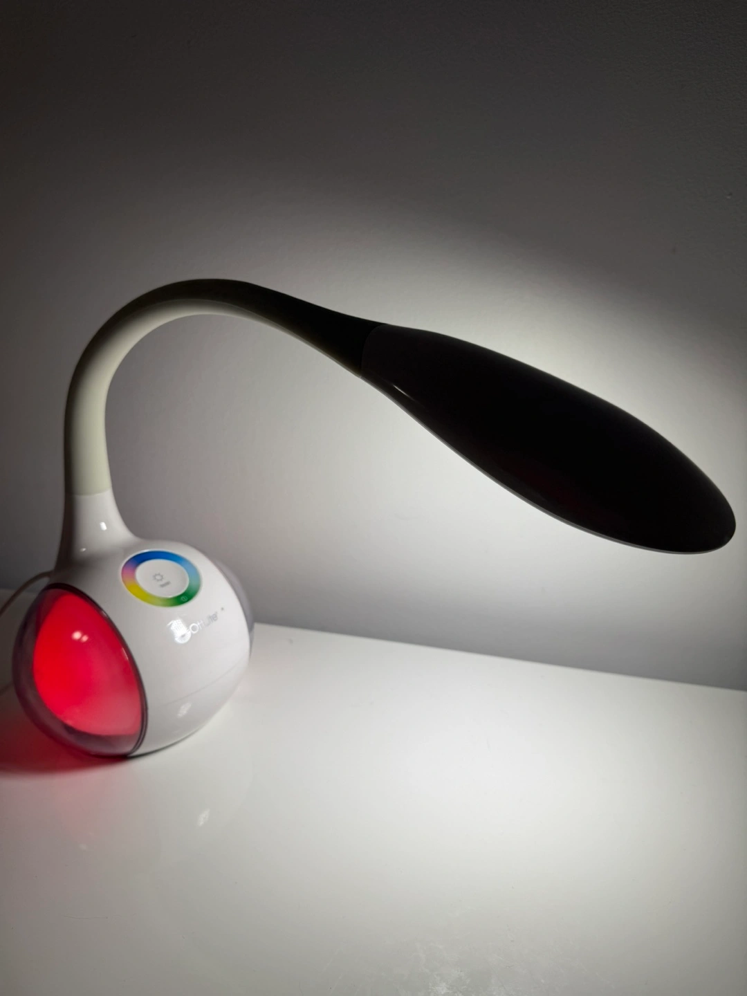 Selling an OttLite LED desk lamp with color changing base. Super bright natural daylight LEDs, Touch sensitive control panel with 3 brightness settings. Height adjusts from 10 to 20.5 inches.