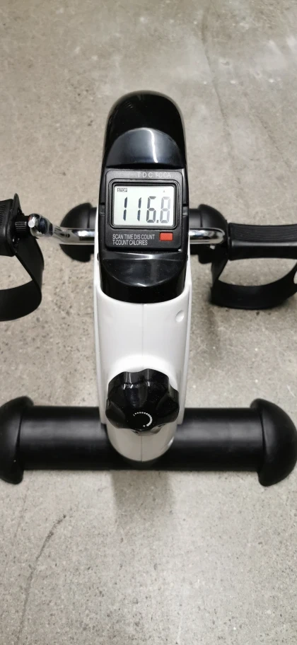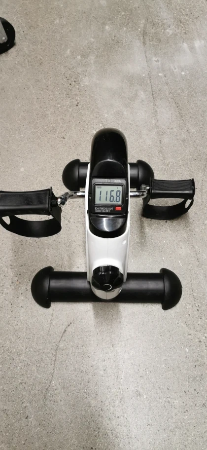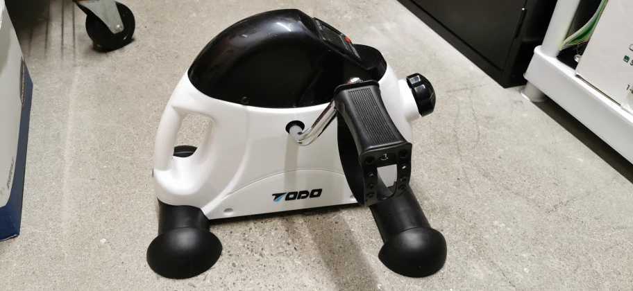Get your workout in anywhere with this portable TODO mini exercise bike! It's perfect for exercising your arms and legs while sitting. The digital display shows scan, time, distance, count, and calories. It's in great condition and ready to help you stay active!