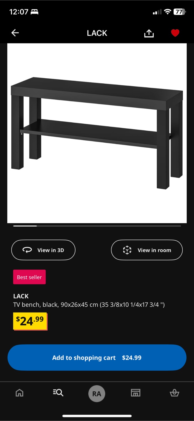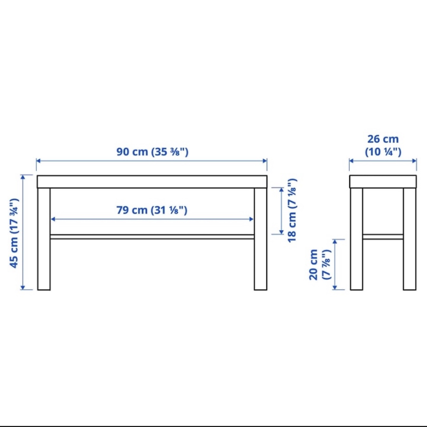 Selling a WHITE IKEA LACK TV bench. It's in great shape and ready for a new home! The dimensions are 90x26x45 cm (35 3/8x10 1/4x17 3/4 ").