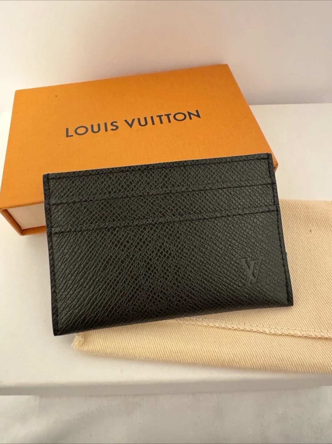 Authentic Louis Vuitton Taiga Porte Carte double card case wallet. Model is M32730.