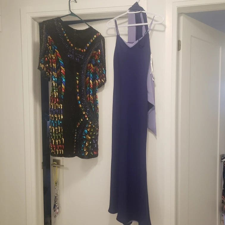 2-Tone Lavender Purple Dress with Chiffon shawl....Size: Canada 8 & UK size 10....$100.....Beautiful Prom dress!!!!