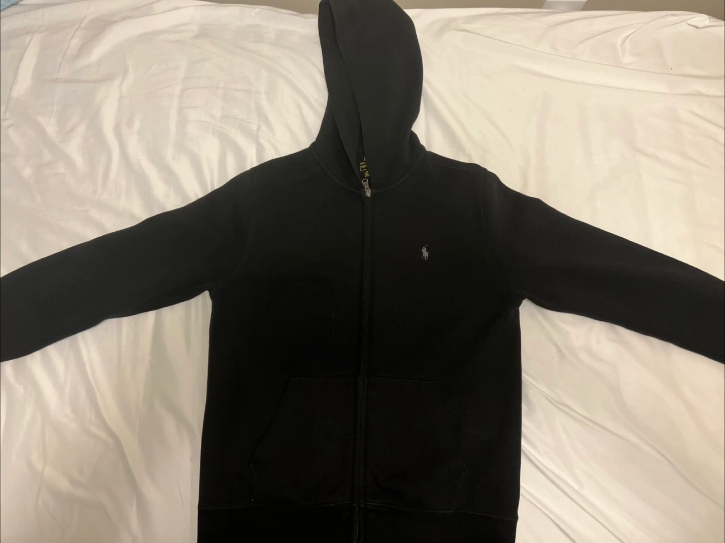 Selling a REAL Polo Ralph Lauren black hoodie in size L (14-16). Great Quality, Bulky, Thick, And Heavy.