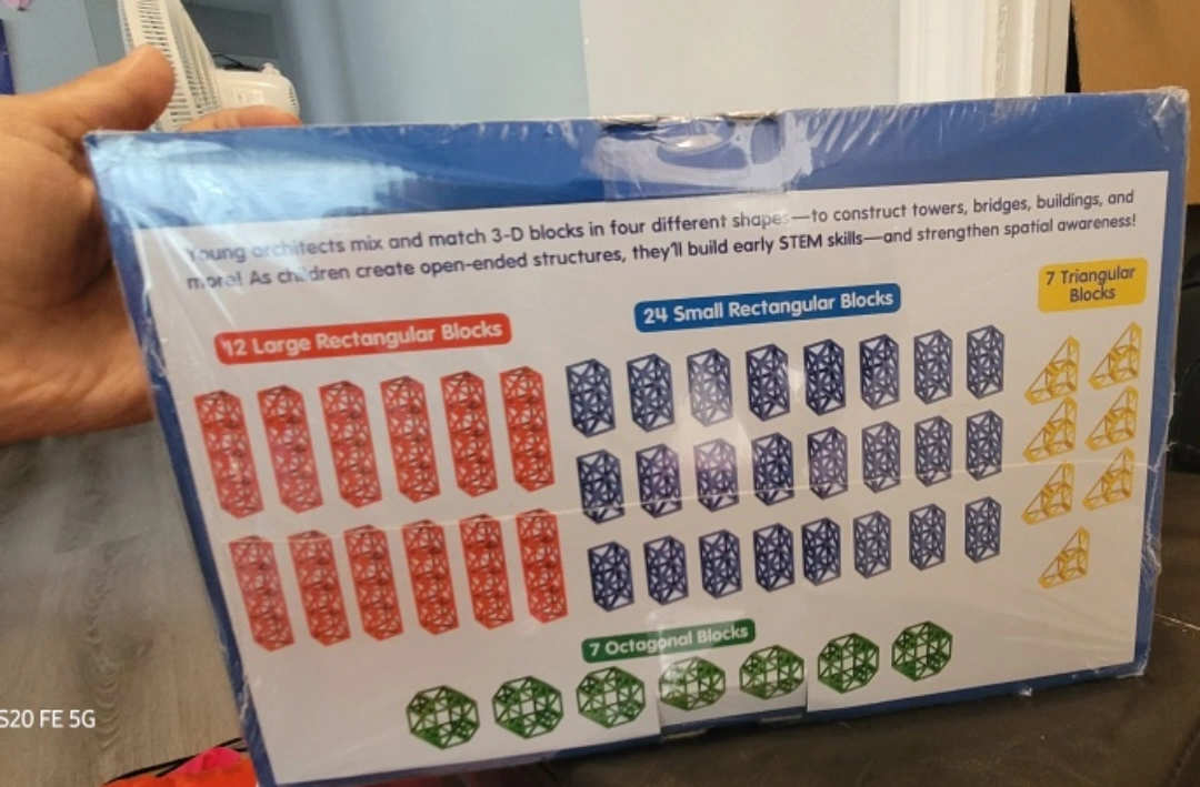 Get your little architect started with this Lakeshore Young Architects Design Blocks Class Set! It includes 12 large rectangular blocks, 24 small rectangular blocks, 7 triangular blocks, and 7 octagonal blocks. It's a great way to build STEM skills and spatial awareness, all while having fun