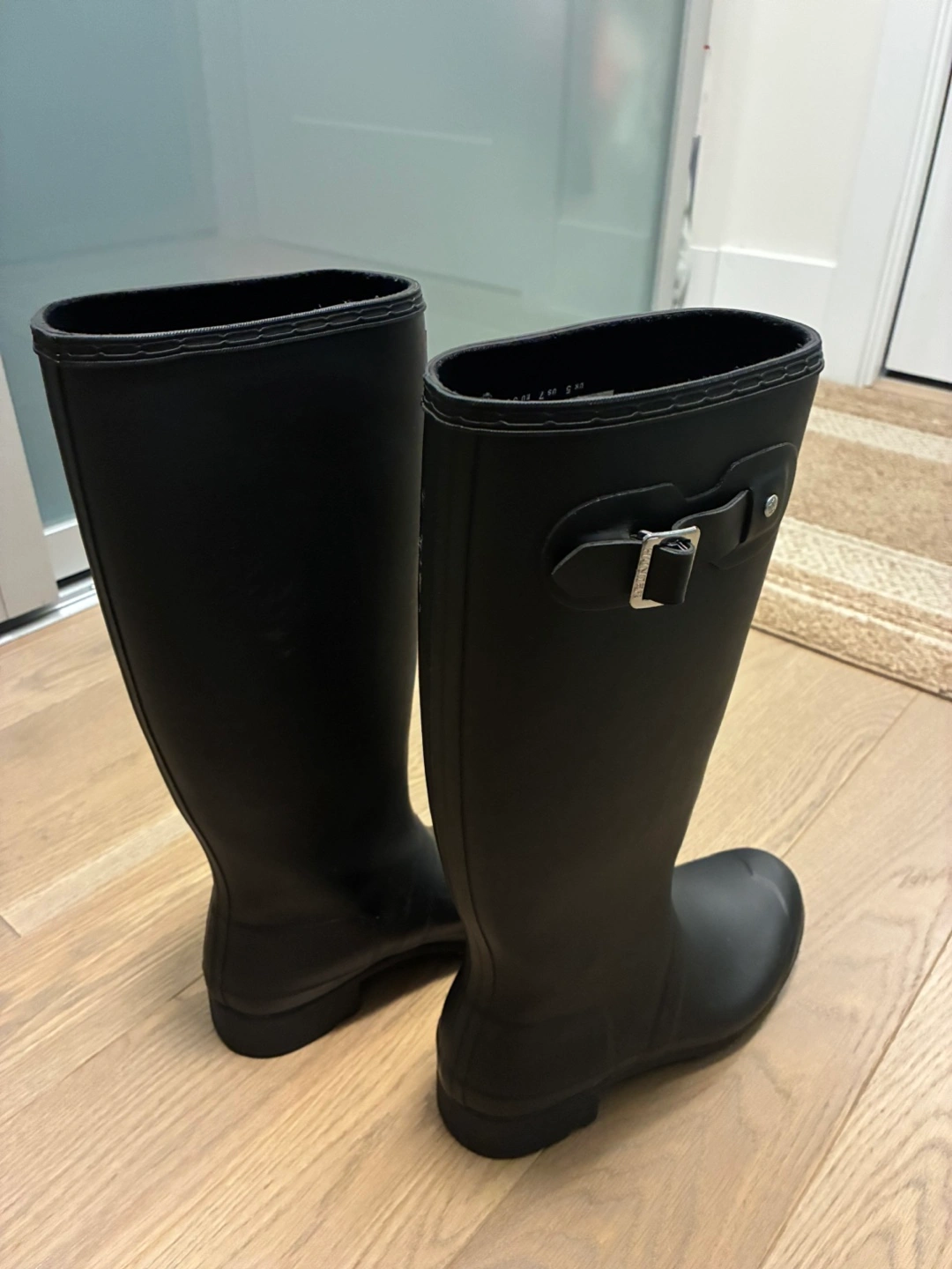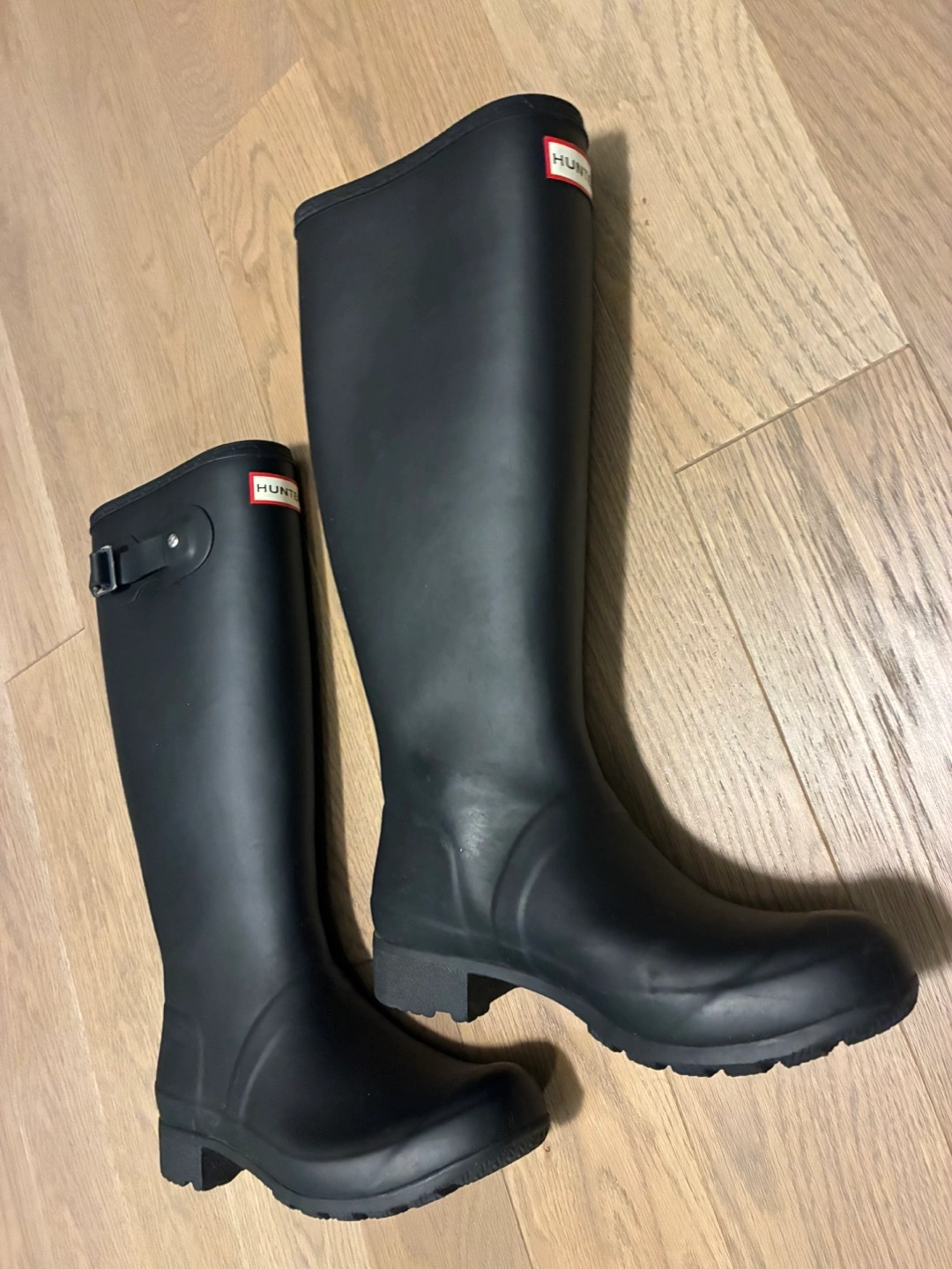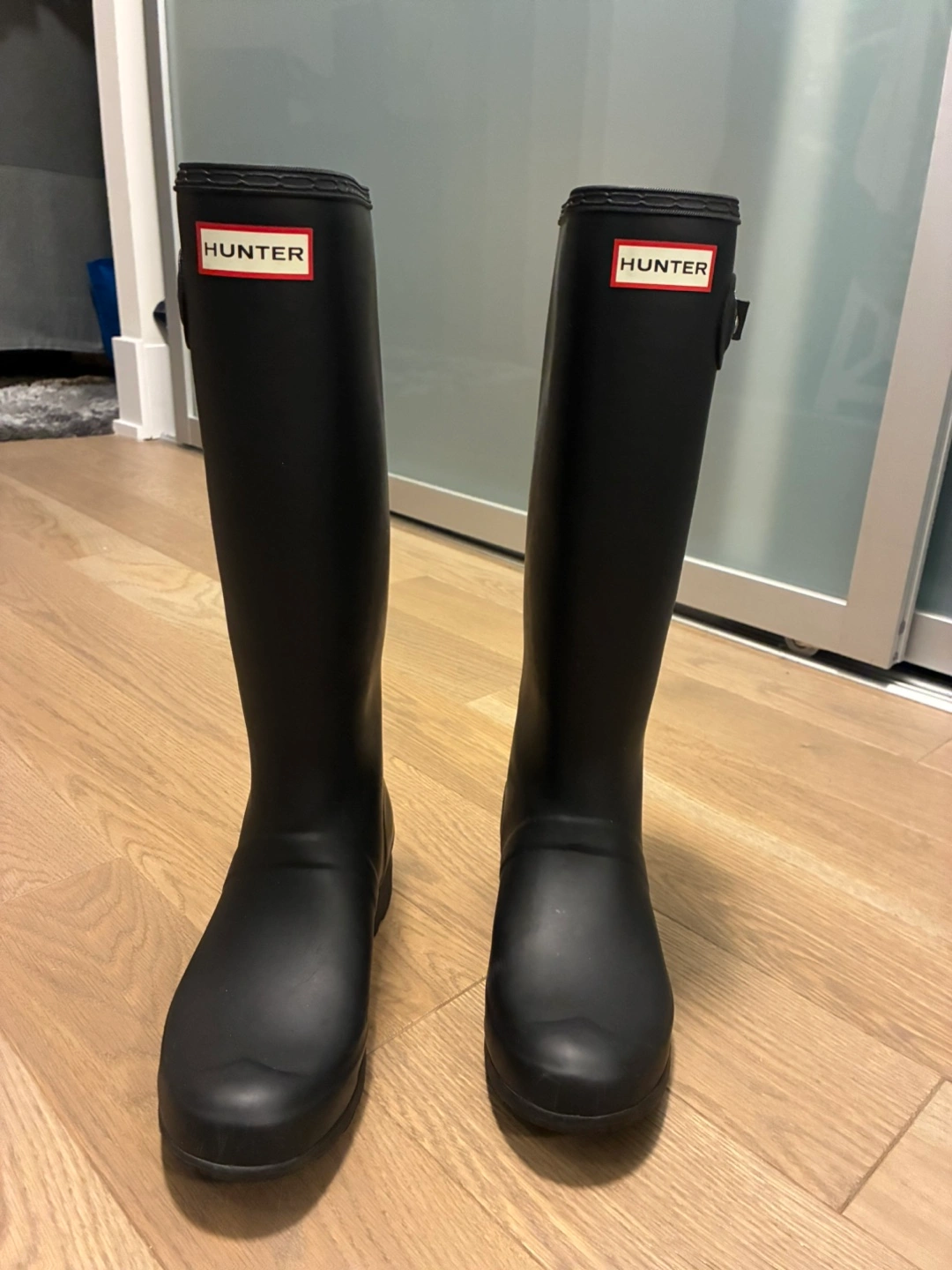 Selling a pair of Hunter rain boots in black. They're in great shape and ready to keep your feet dry on those rainy days! Size is women's 7 (US).