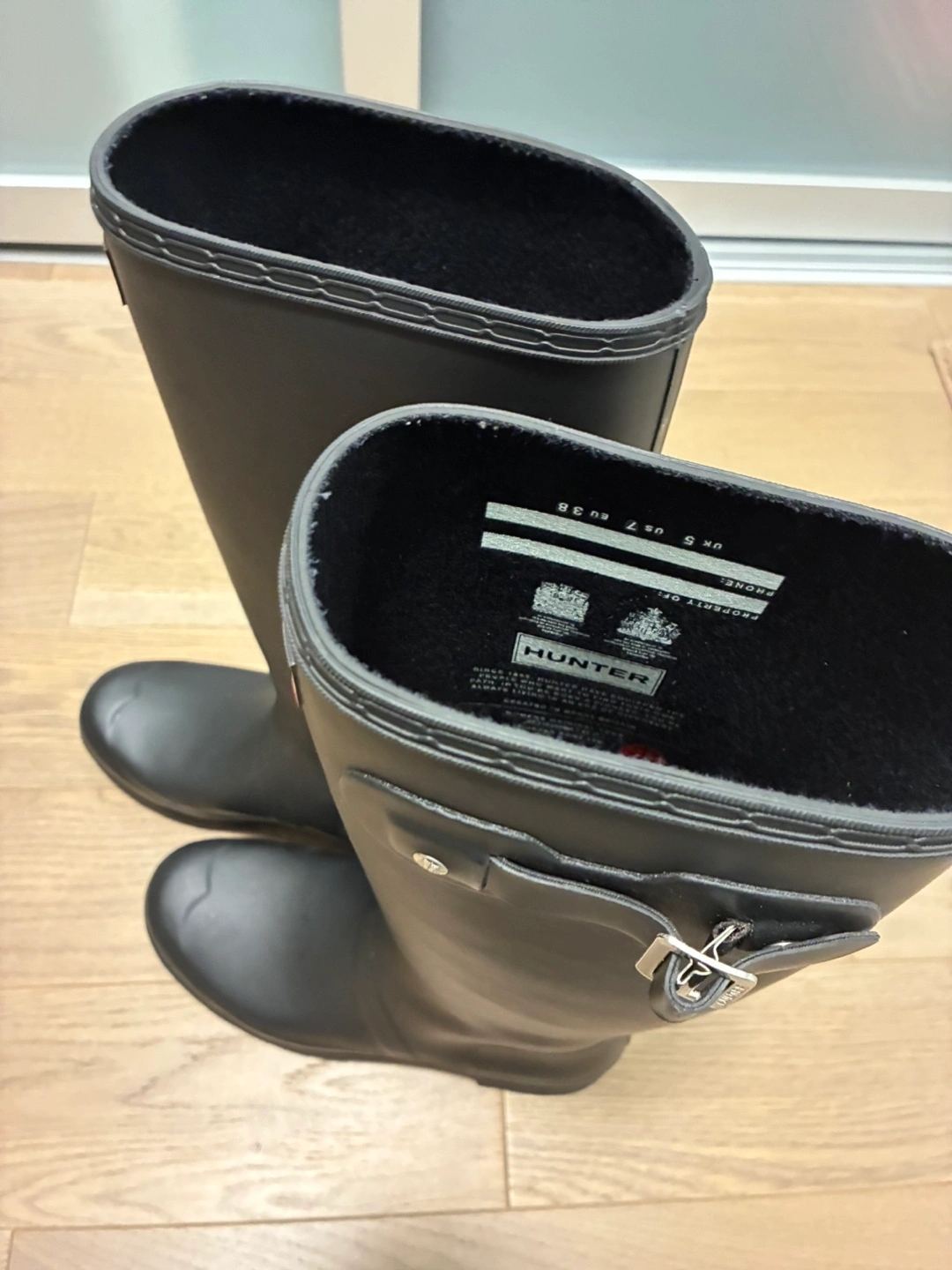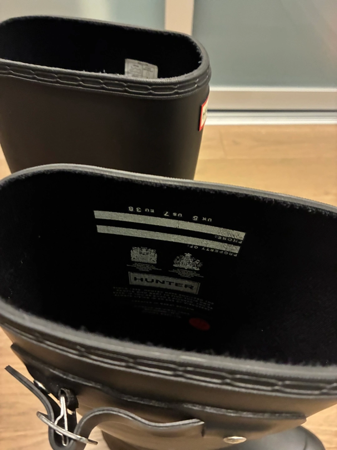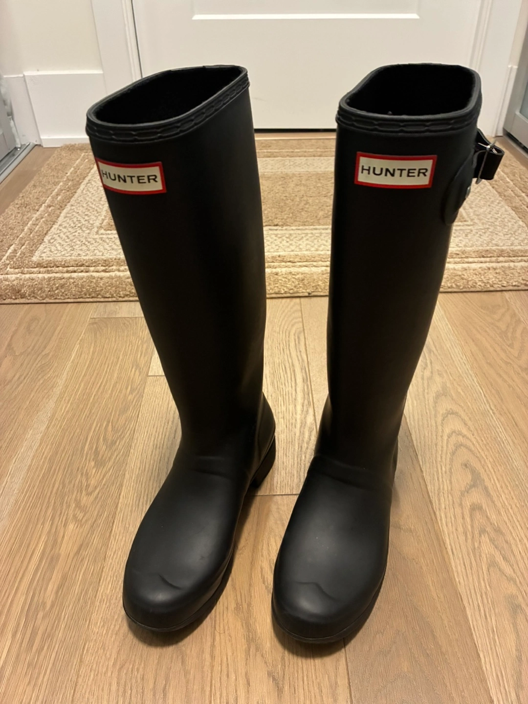 Selling a pair of Hunter rain boots in black. They're in great shape and ready to keep your feet dry on those rainy days! Size is women's 7 (US).