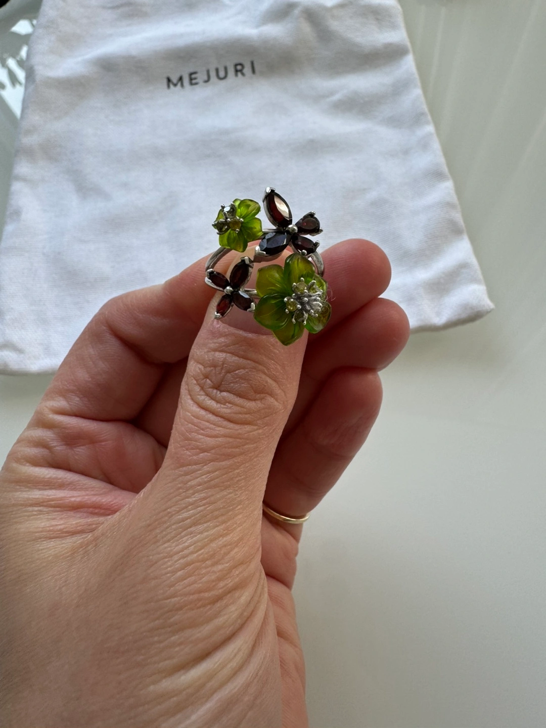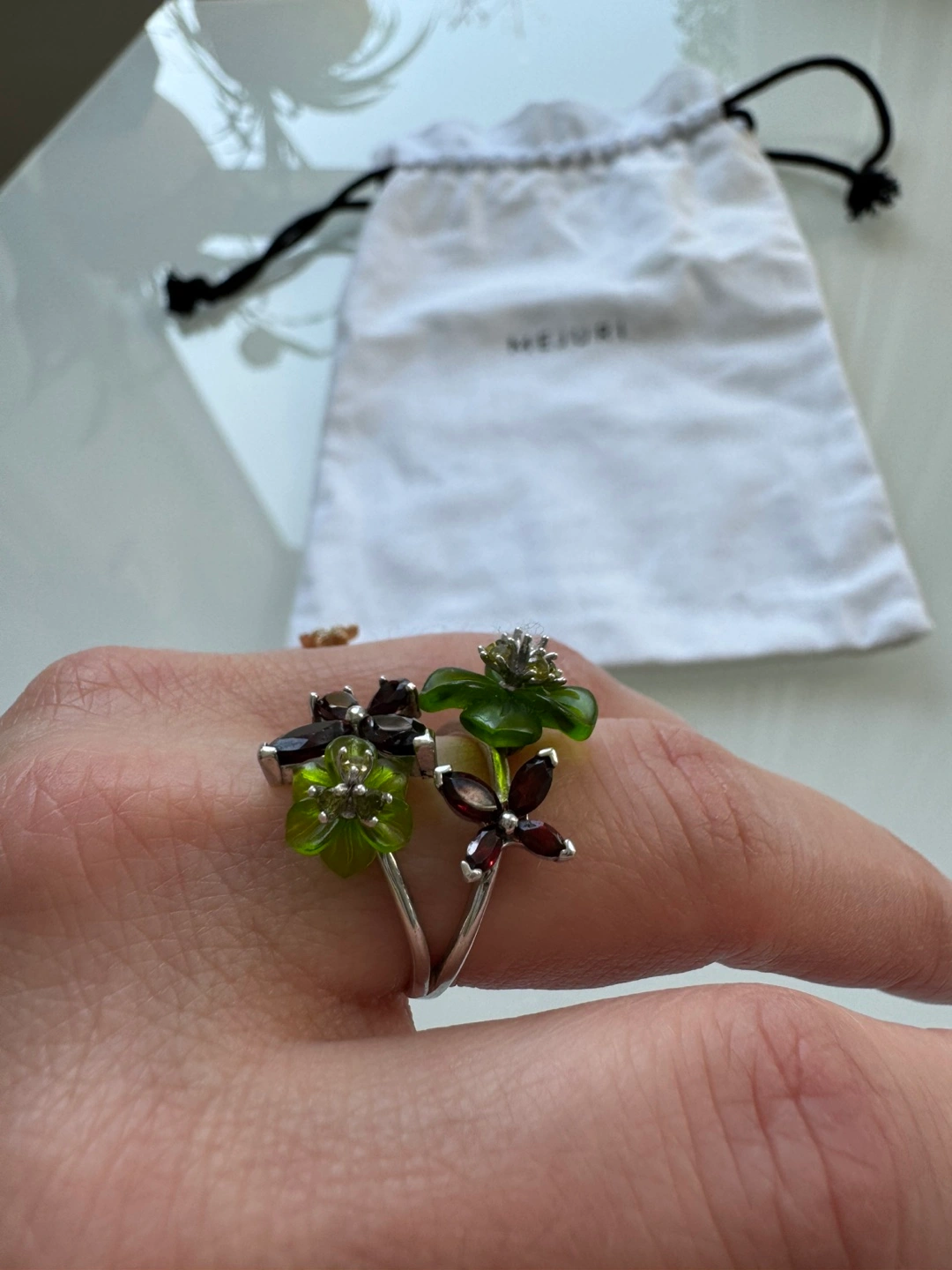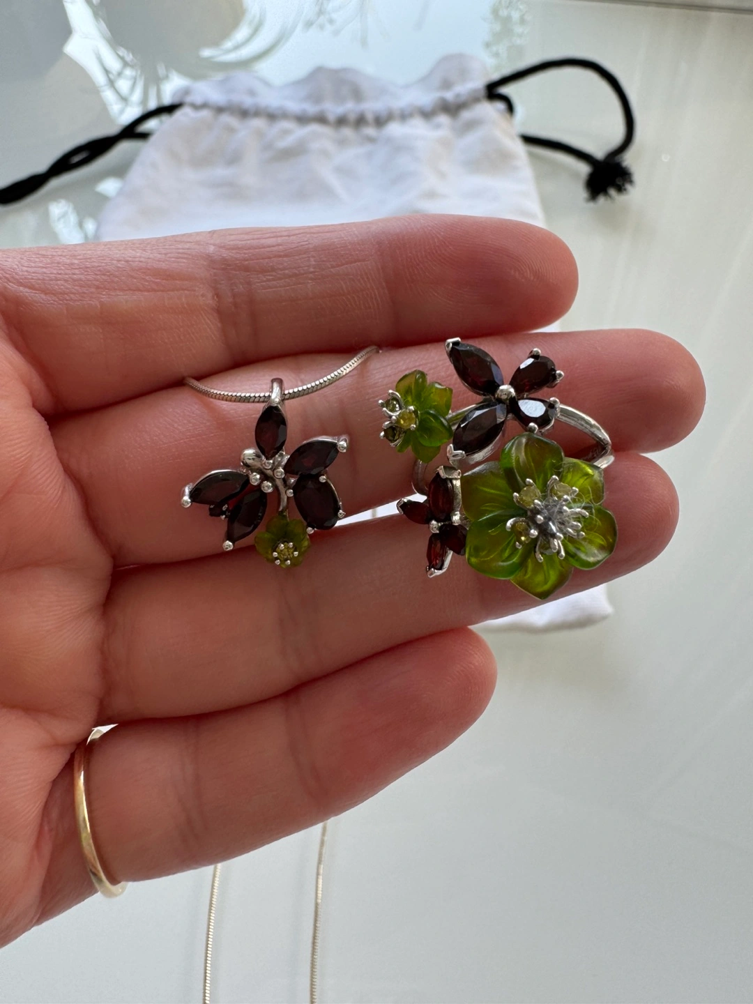 1000+Beautiful sterling silver and semiprecious stones ring and necklace set. I purchased these in Prague a few years back. The red stone is Czech garnet also known as Bohemian garnet. I will offer them in the Mejuri pouch