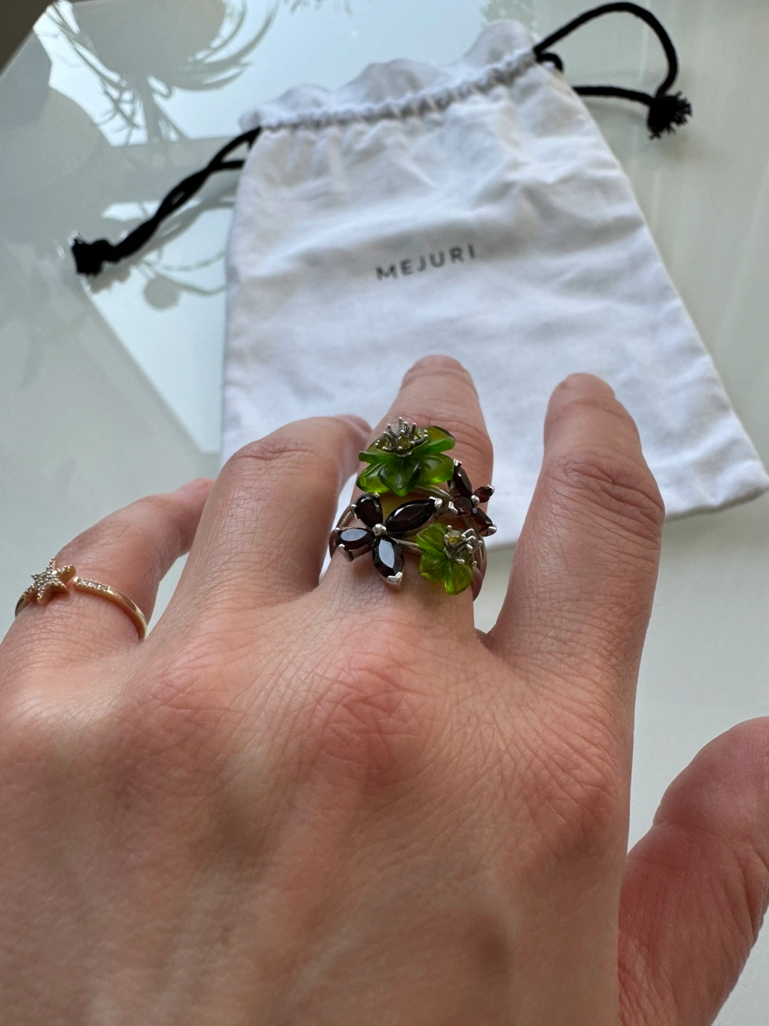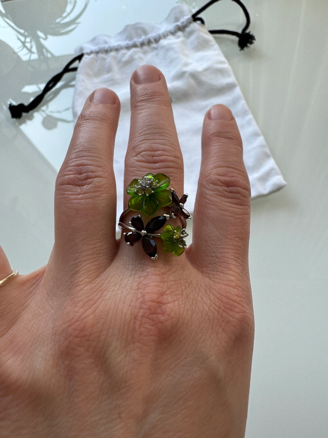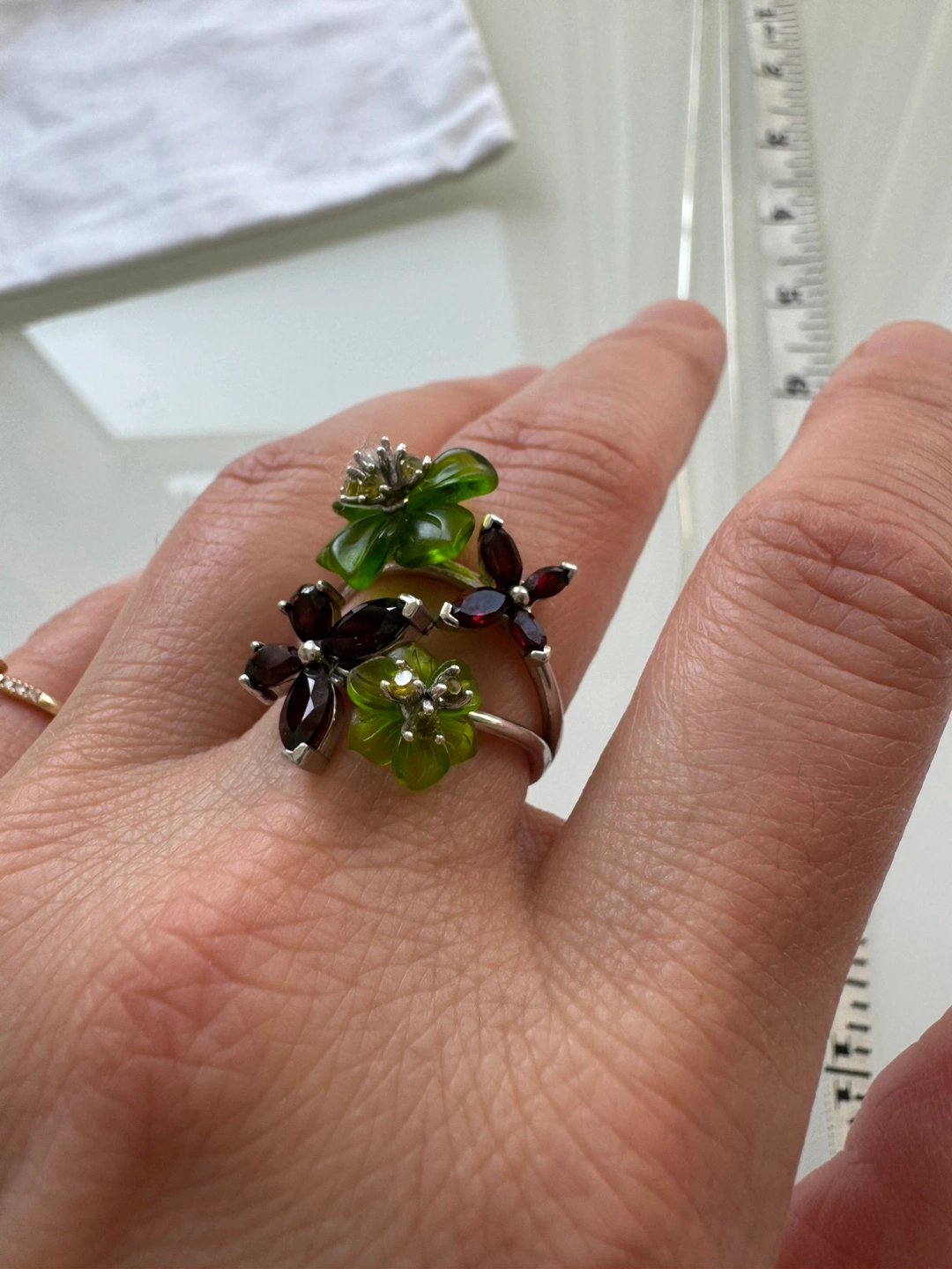 1000+Beautiful sterling silver and semiprecious stones ring and necklace set. I purchased these in Prague a few years back. The red stone is Czech garnet also known as Bohemian garnet. I will offer them in the Mejuri pouch