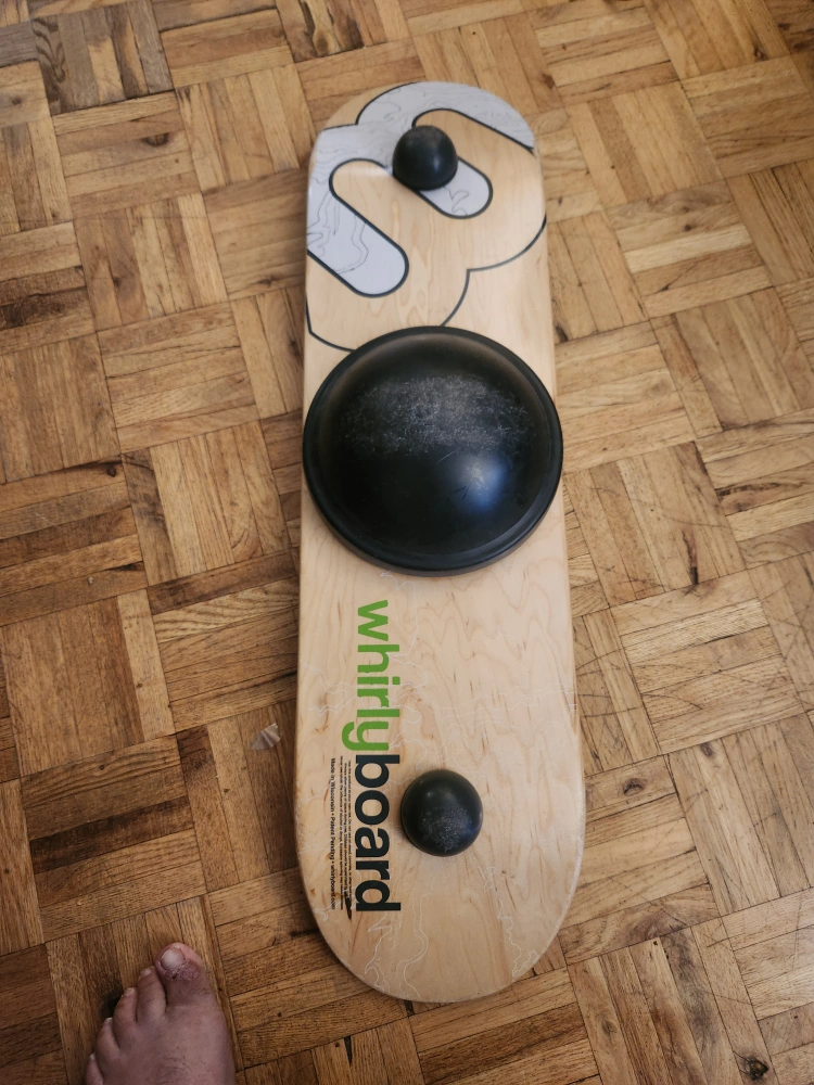 Whirly Board balance board, great for kids but sturfy enough for adults too, if you want to practice skateboarding skills in your living room. Origibally paid 150.