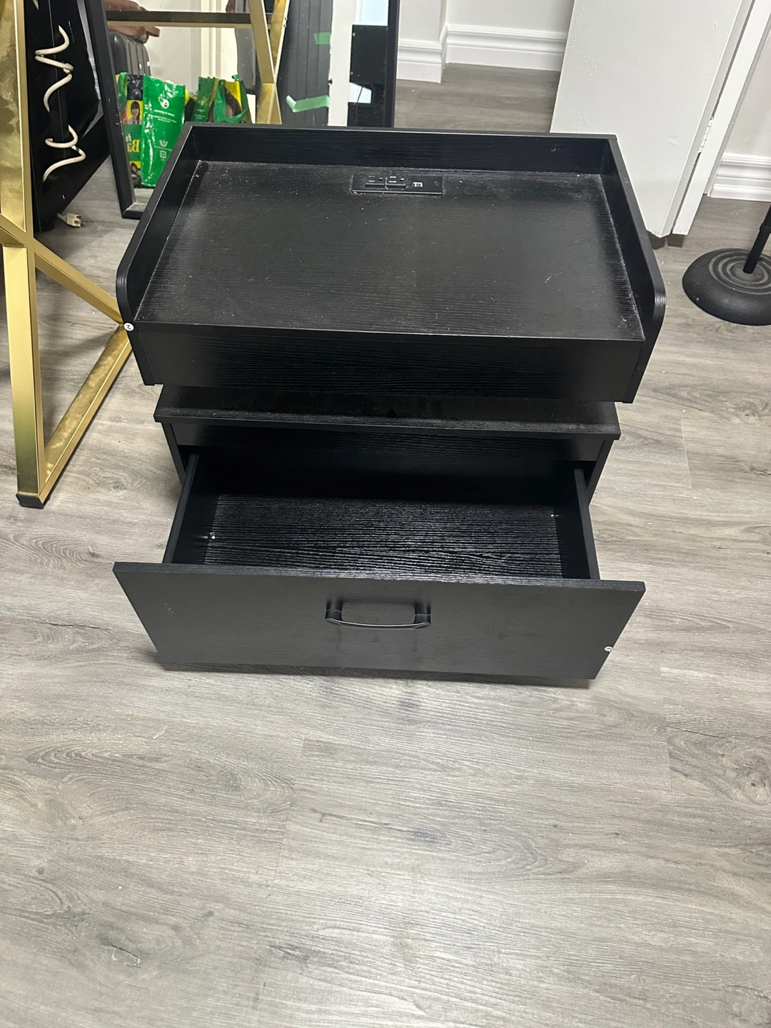 The nightstand Storage Cabinet is arranged with 2ac+2sub Socket. It provides convenience for charging your phone, earphone, desk lamp, and other electrical appliances.