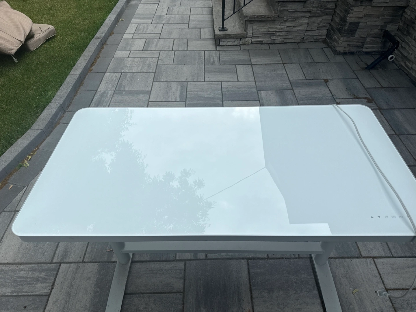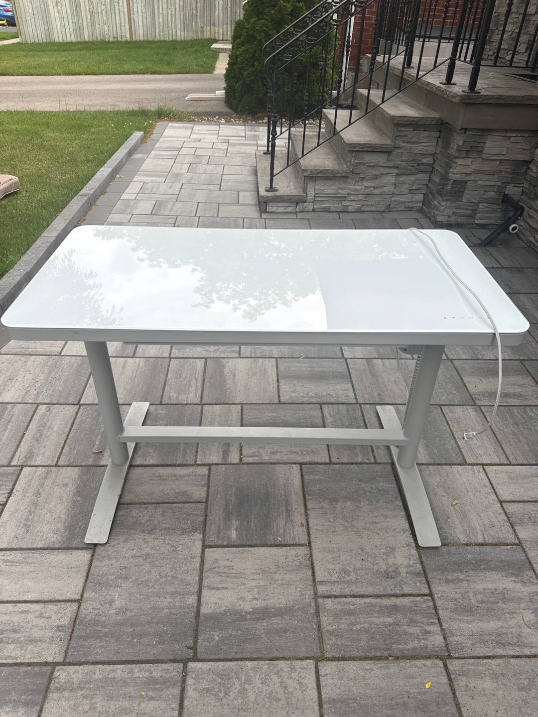 Selling a white adjustable standing desk. It's in great condition and ready to help you work comfortably from home! The desk is a sleek and modern addition to any workspace