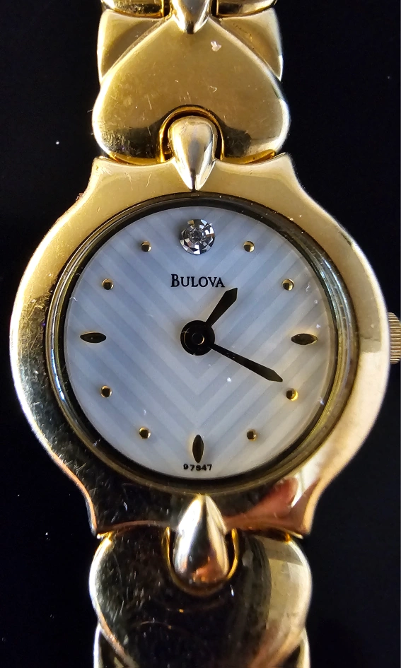 Selling a beautiful Vintage Bulova women's watch with a gold-tone, heart shaped bracelet. It's in great condition and ready to wear! The watch features a unique heart-shaped link design on the bracelet and a subtle chevron pattern on the face . Battery was freshly changed June 21,2025 with a year warranty on the battery.