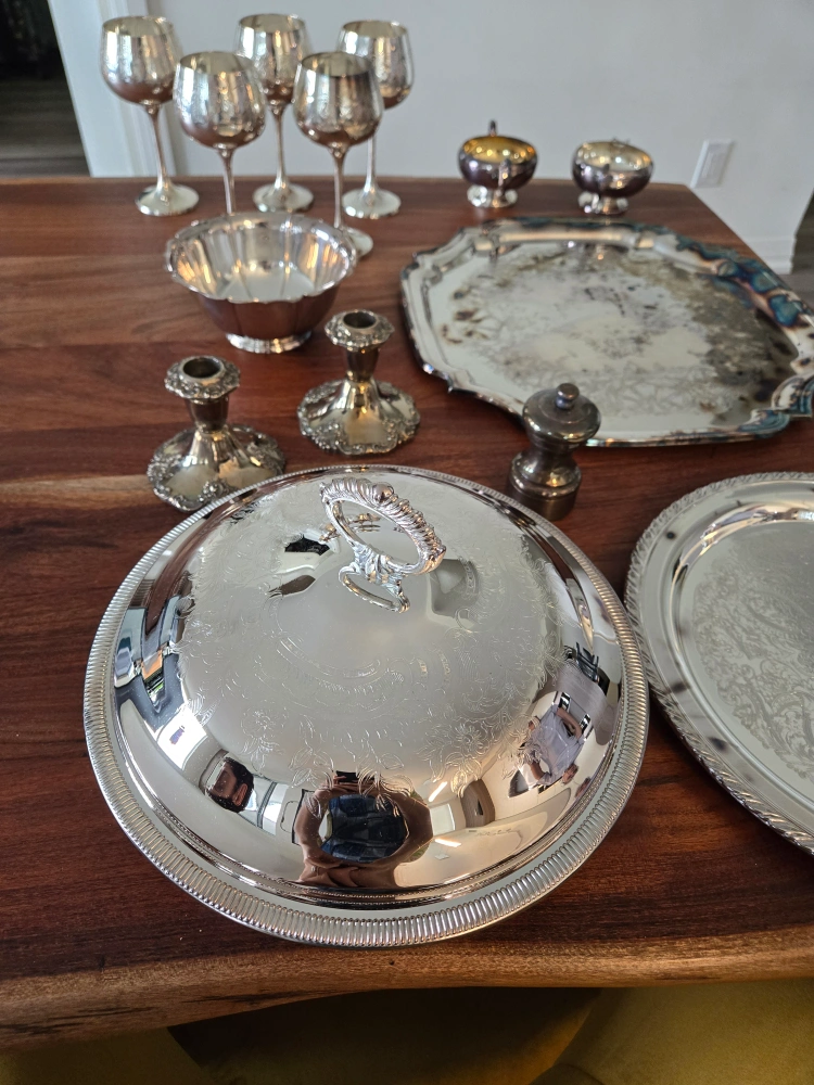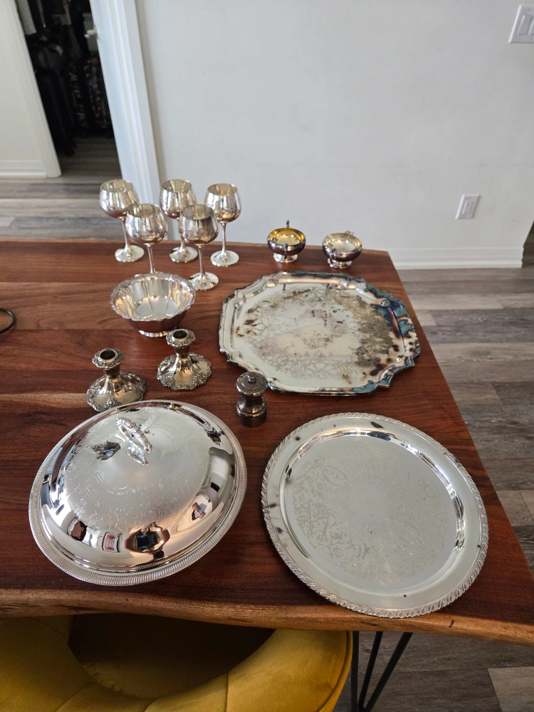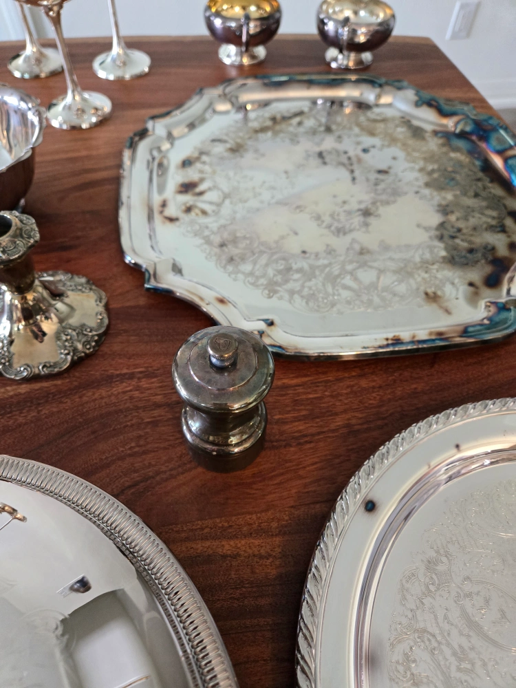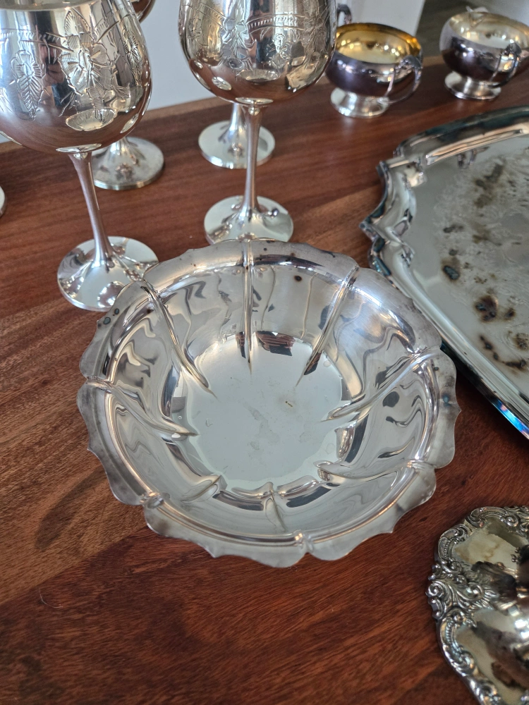 Selling some vintage silver plated trays. They have some wear and tear from age, but still have a lot of charm! Perfect for adding a touch of elegance to your home.
