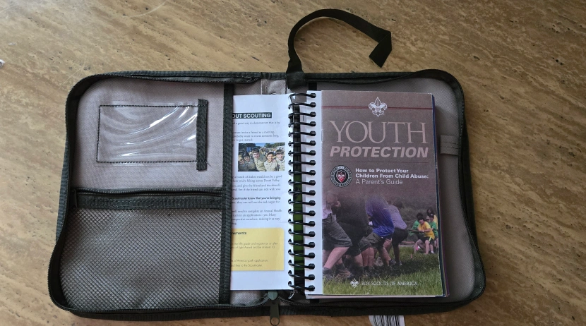 Selling a Boy Scouts of America Youth Protection guide. It comes in a gray zippered case with a handle. Perfect for any scout leader or parent involved in scouting!
