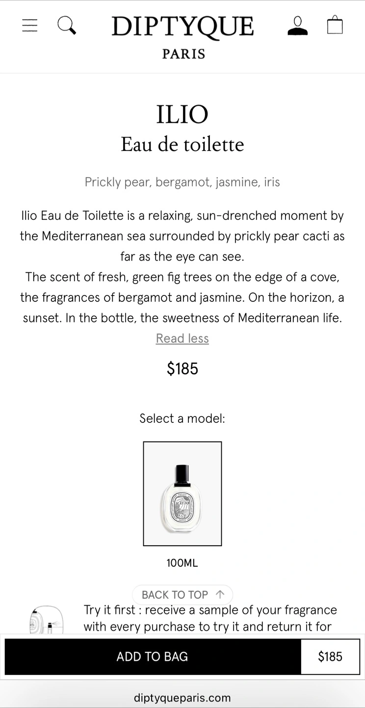 I am able to spray on a scent strip to guarantee its authenticity, but please try this first at Dyptique so you know it’s what you want.