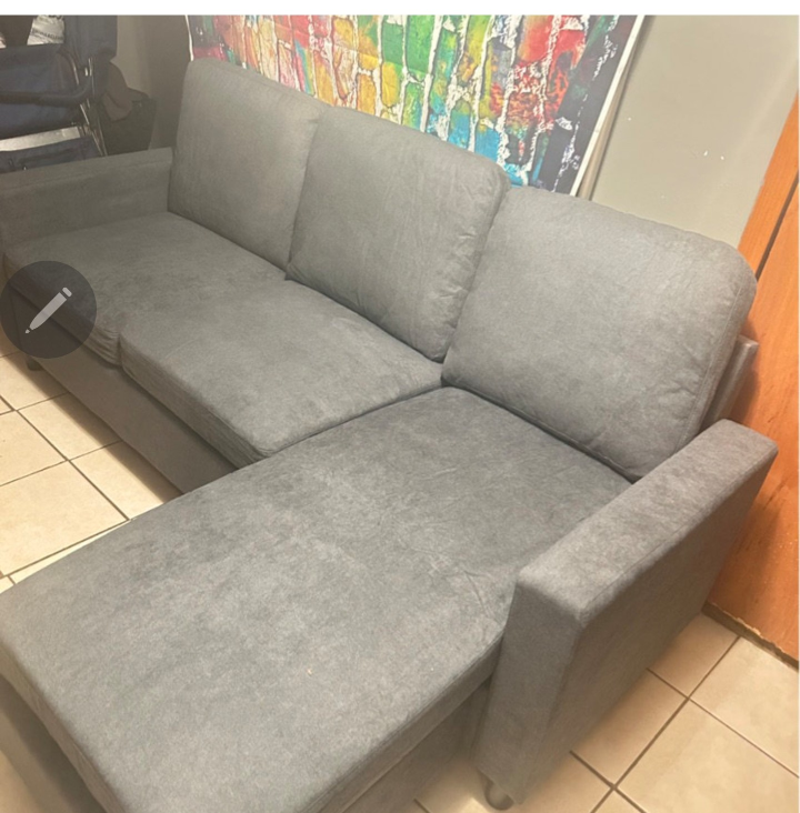 light gray bought it a month ago selling for more than half the price I bought it no pets kids or smoking home quick sale could use a little rub down selling cause I bought finally the couch I really wanted also I have a 16 inch spotless king mattress for 50$ and queen size railing 20$ and king bedroom set free high boy and long dresser! it's under tarp outside couch is inside all ypu need is a can to move the couch selling 100.00 pick up only.