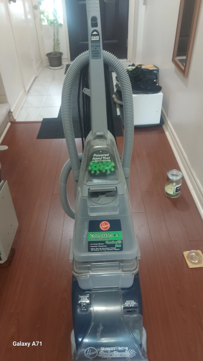 Selling a Hoover SteamVac SpinScrub carpet cleaner. It's in good working condition and ready to help you get your carpets clean. It features a powered hand tool for spot cleaning and tackling tough stains. Great for keeping your home fresh and tidy!