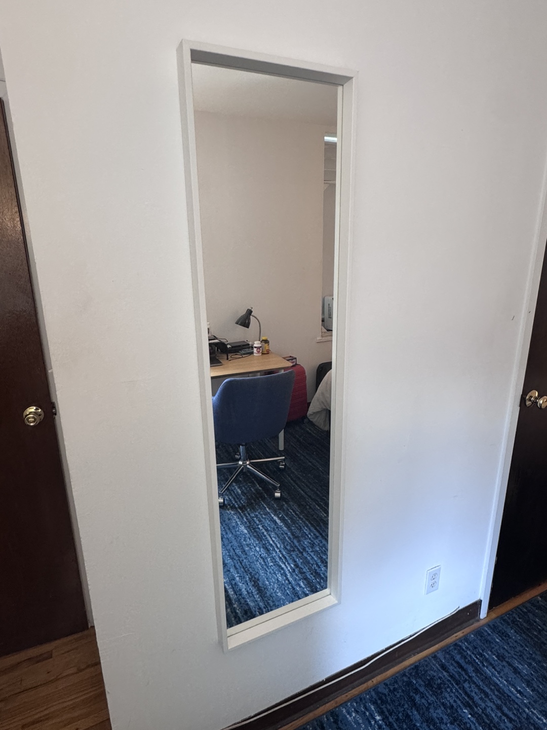 Selling a full-length mirror with a white frame!