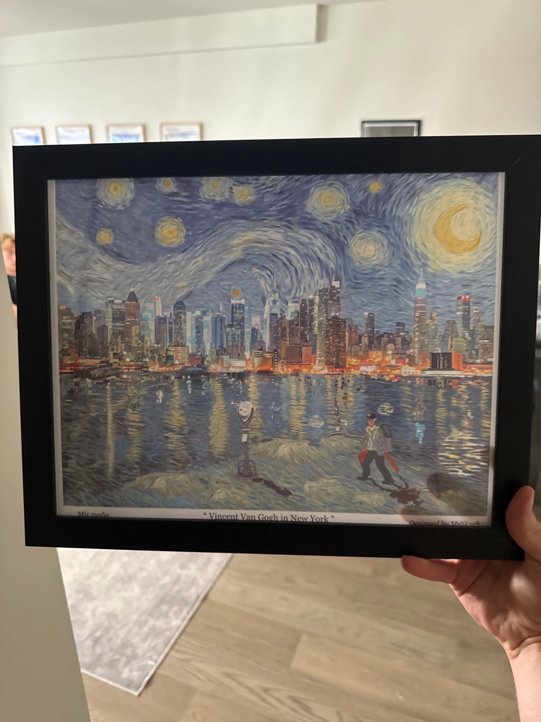 Selling a framed piece of art titled "Vincent Van Gogh in New York"! It's a mix media print designed by Meliksah