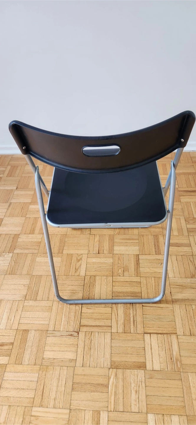 346PICK UP ONLY Selling two handy black folding chairs! It's in great shape and perfect for extra seating when you have guests or for small spaces. Easy to store when not in use