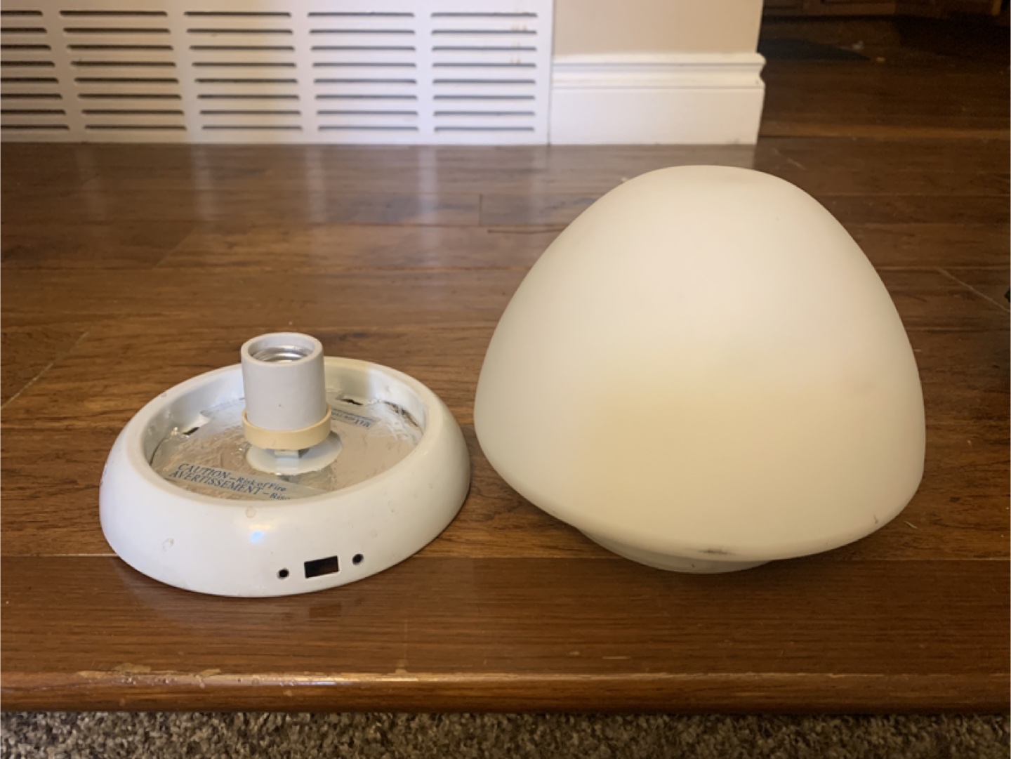 Selling a white ceiling light fixture. It's in good condition and ready to brighten up your space! Simple 2 wire install. Great for a replacement or needed ligh