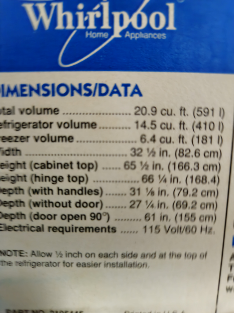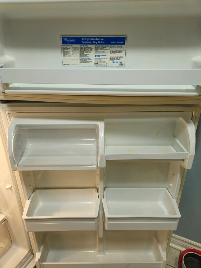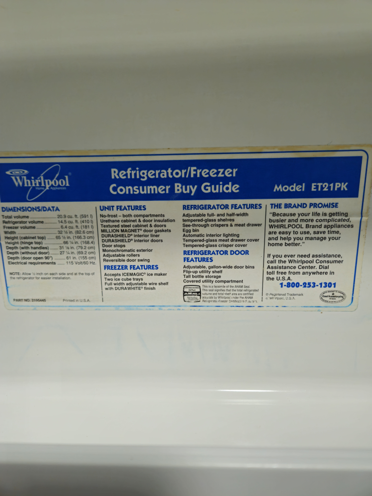 Please read the description selling as is not functioning well. The freezer cabin keeps it cool. Fridge part not so cool.If you want it for metal scrap or your able to fix its yours for $30 unit is clean. Selling a Whirlpool refrigerator/freezer as is.The model is ET21PK. It features adjustable full- and half-width tempered-glass shelves. It also has interior lighting and a covered utility compartment.
