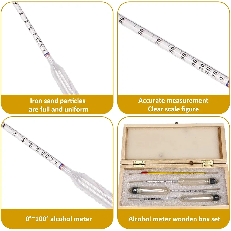 Selling an antique hydrometer set, complete with a wooden box. It includes several glass hydrometers and a thermometer. A unique find for collectors or those interested in vintage scientific instruments!