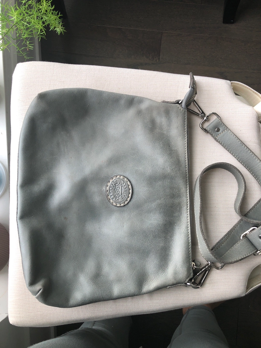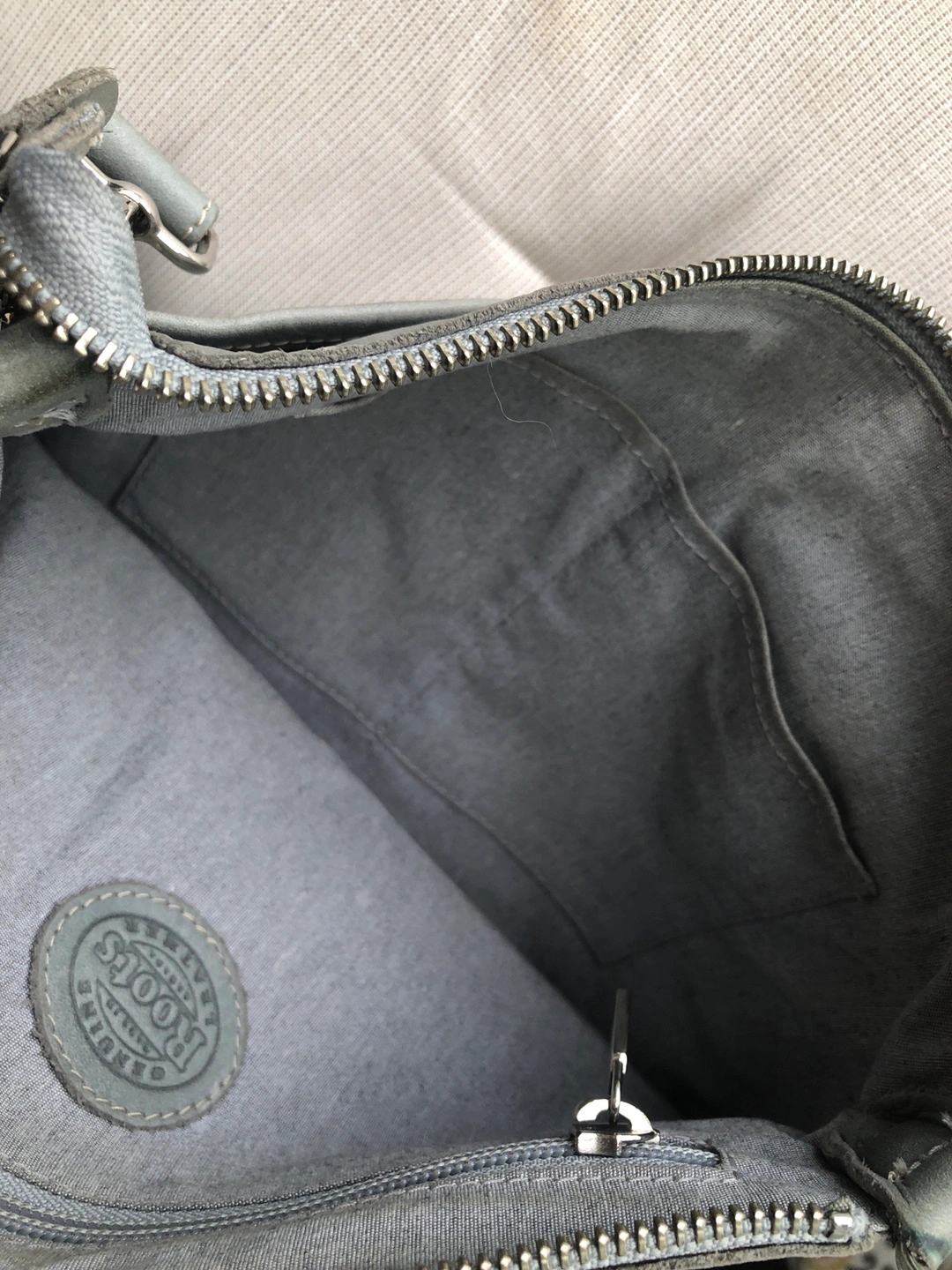 Selling a Roots leather crossbody bag in a lovely grey colour! It's in good condition and perfect for everyday use. Has a zipper and pockets inside, an inner zipper pocket, a closed and open pocket outside too