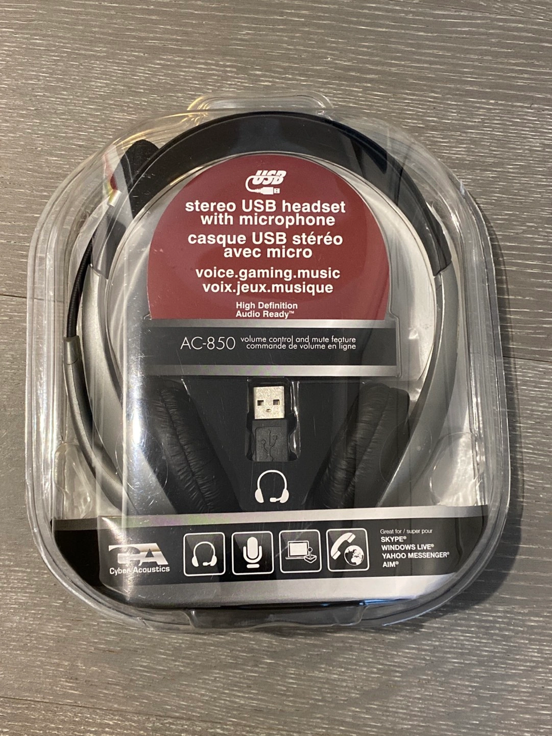 44Cyber Acoustics headset (brand new in box) - Noise-canceling microphone - In-line volume and mute control - Leatherette ear pads - Adjustable headband - Adjustable boom arm (swings for left or right side use) - PC and Mac compatible Pick up only at King/John (near St. Andrew subway).