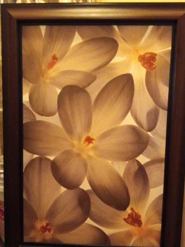 Beautiful floral print in a dark brown frame! It's in great condition and ready to brighten up any room. Large 30"x42"