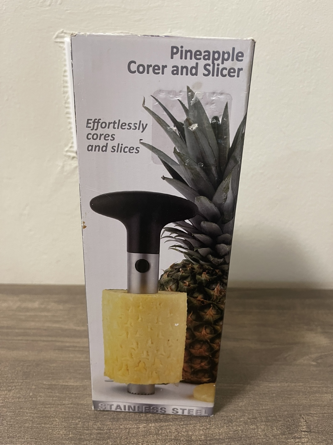 Effortlessly core and slice your pineapples with this handy tool! It's made of stainless steel and comes in its original box
